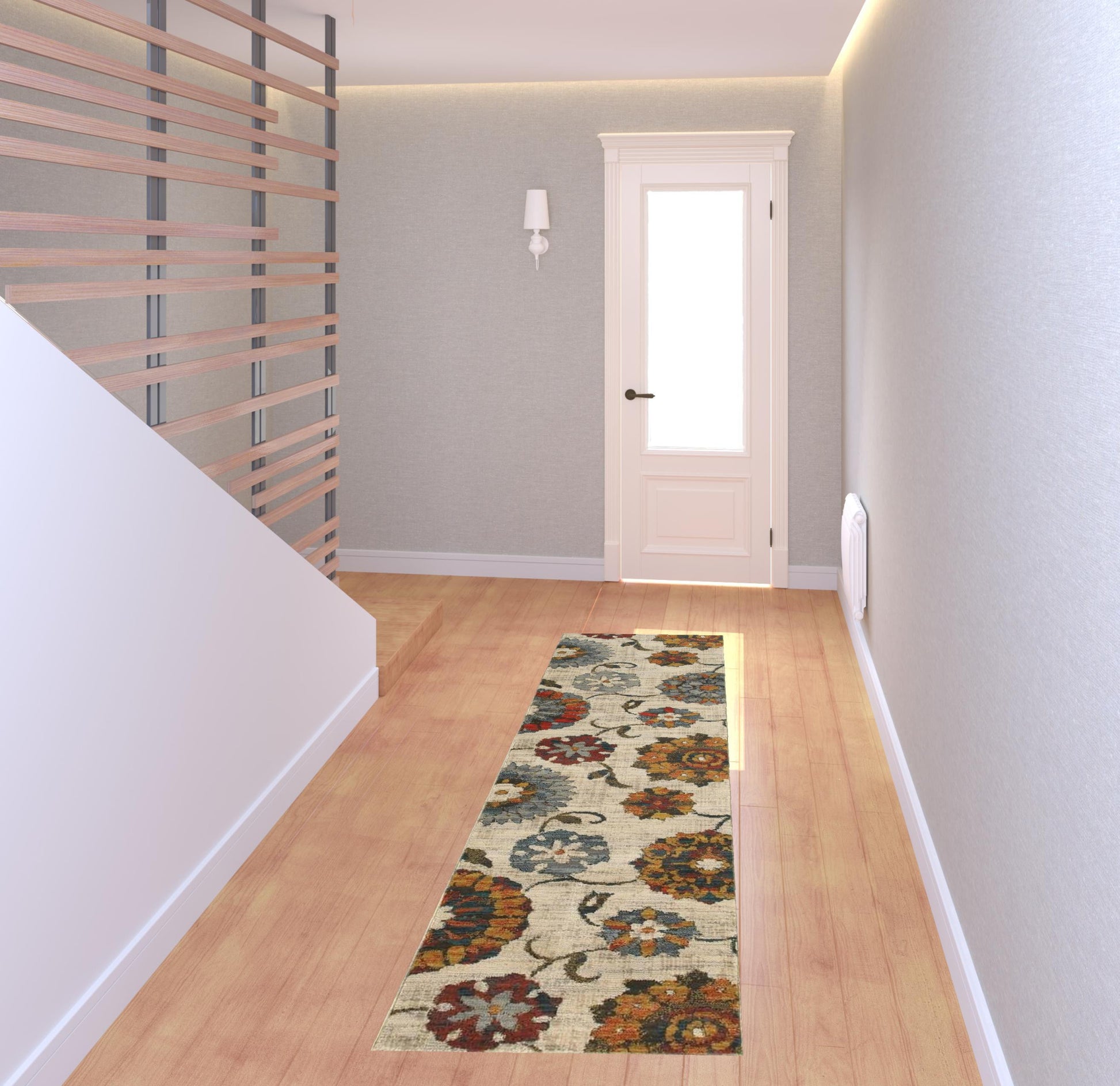 Add great coloration and comfortable texture to your space with this 2' x 8' orange and ivory floral power loom runner rug. This runner shaped rug features a floral design in orange and ivory to give it visual interest. A classic shape marries with good looking design for your space Ideal for spaces with kids and pets, this rug is stain resistant to help repel stains and spilled liquids. Area Rugs help to give warmth and sense of home to your space. 0.39" H x 26.77" W x 90.55" D