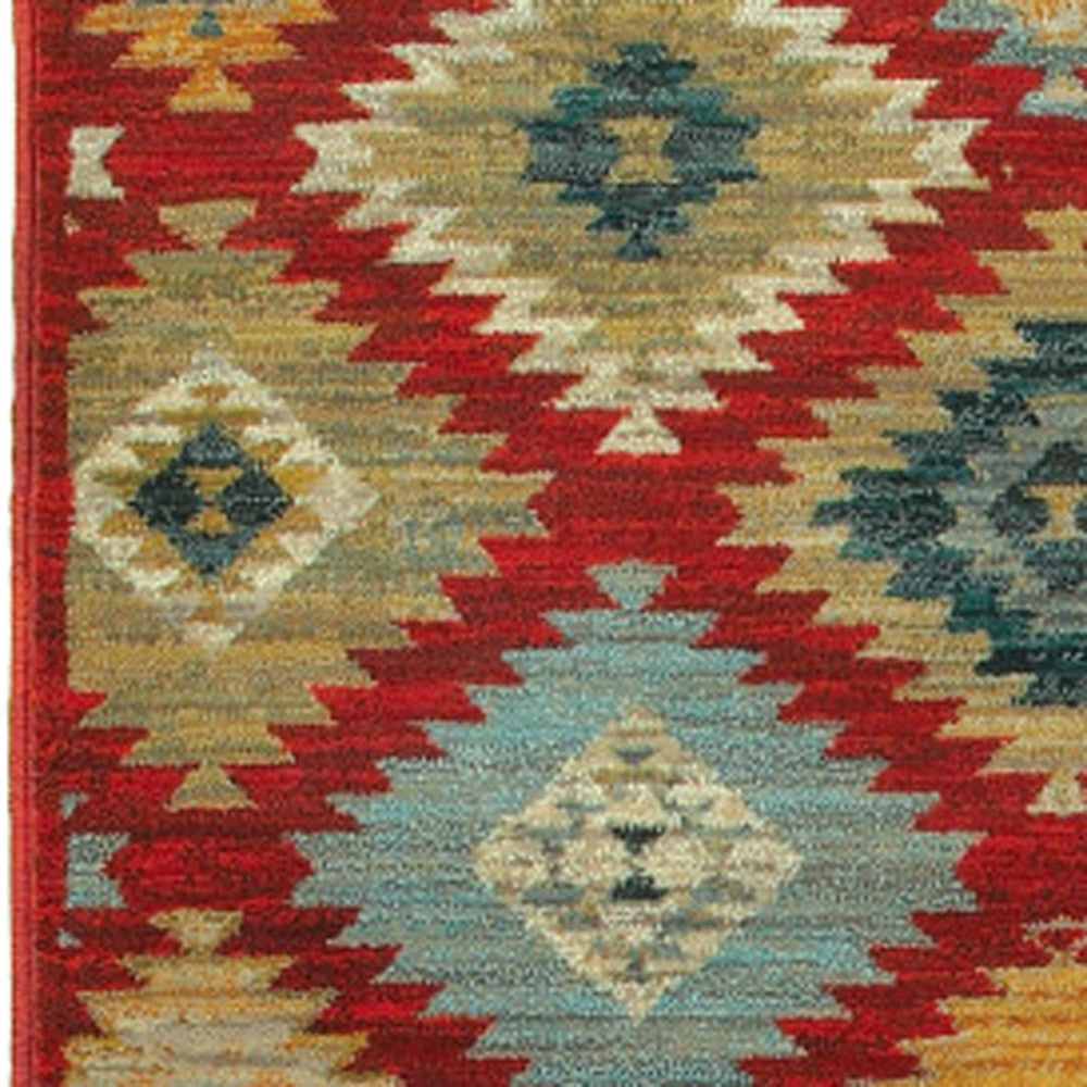 2' X 8' Red Green Gold Blue Teal And Ivory Geometric Power Loom Stain Resistant Runner Rug