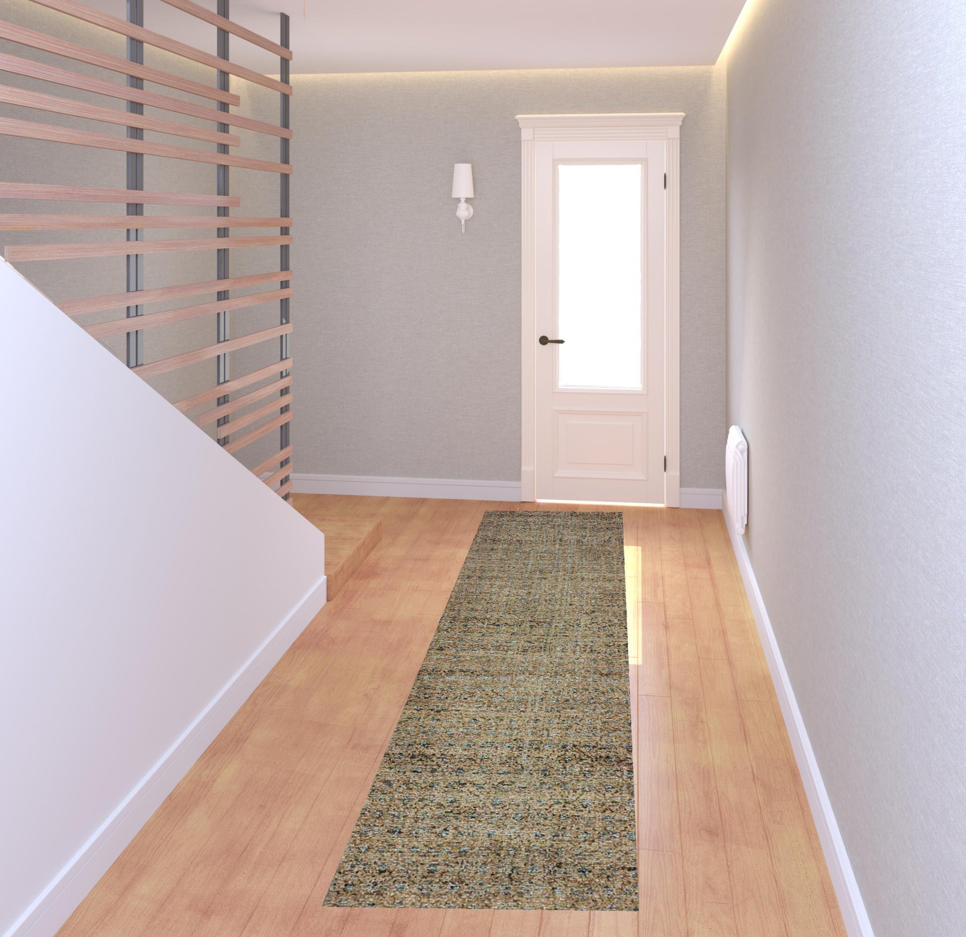 This 2' x 8' silver gold rust and blue green geometric power loom stain resistant runner rug, is a great way to add warmth to a room. This runner shaped rug features a geometric design in silver gold rust and blue green to give it visual interest. A classic shape marries with good looking design for your space Ideal for spaces with kids and pets, this rug is stain resistant to help repel stains and spilled liquids. Area Rugs help to give warmth and sense of home to your space. 0.55" H x 26.38" W x 99.61" D