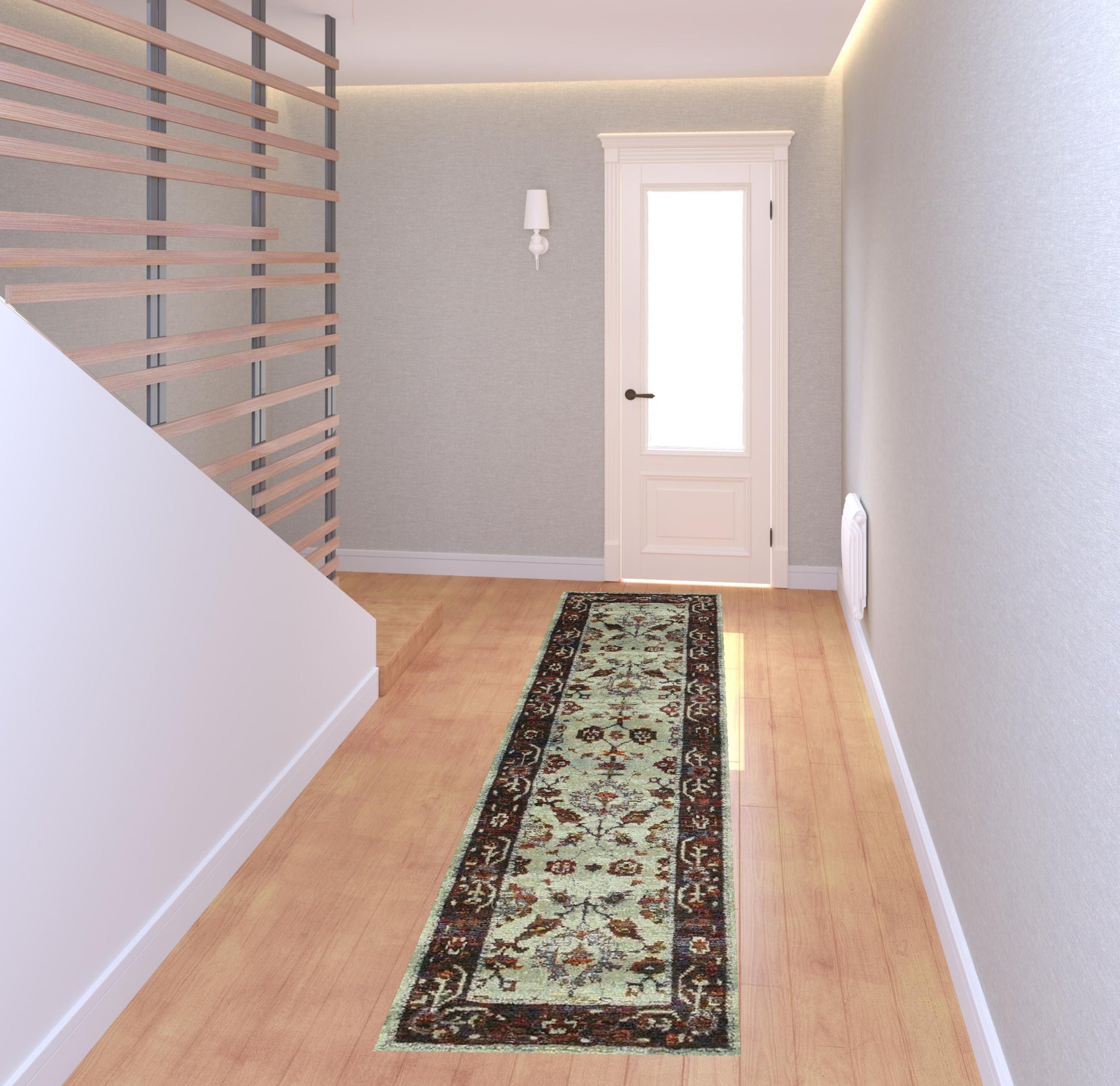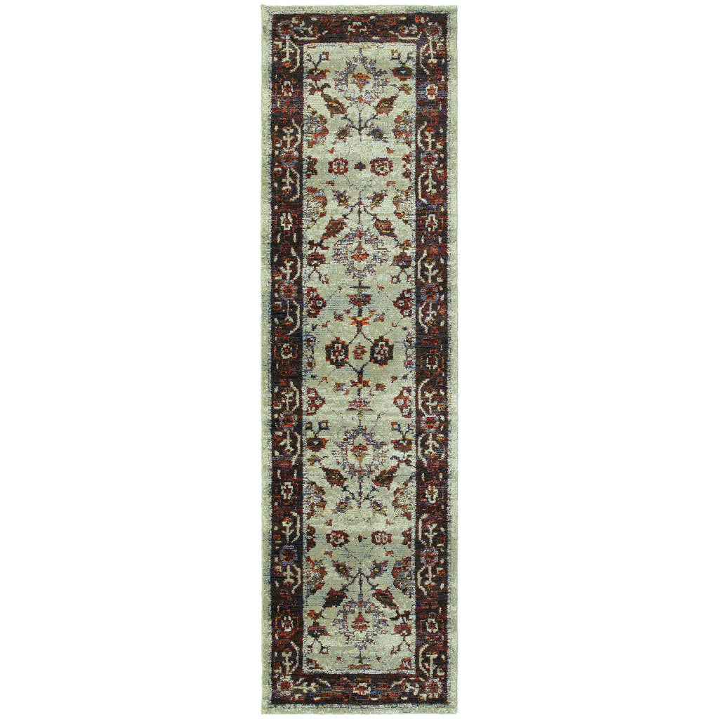 Set an inviting tone in your space with this 2' x 8' stone and red oriental power loom stain resistant runner rug. This runner shaped rug features a oriental design in stone and red to give it visual interest. A classic shape marries with good looking design for your space Ideal for spaces with kids and pets, this rug is stain resistant to help repel stains and spilled liquids. Place this area rug against a hardwood or tile floor and it will enliven your living space with style and sophistication. 0.55" H x 26.38" W x 99.61" D