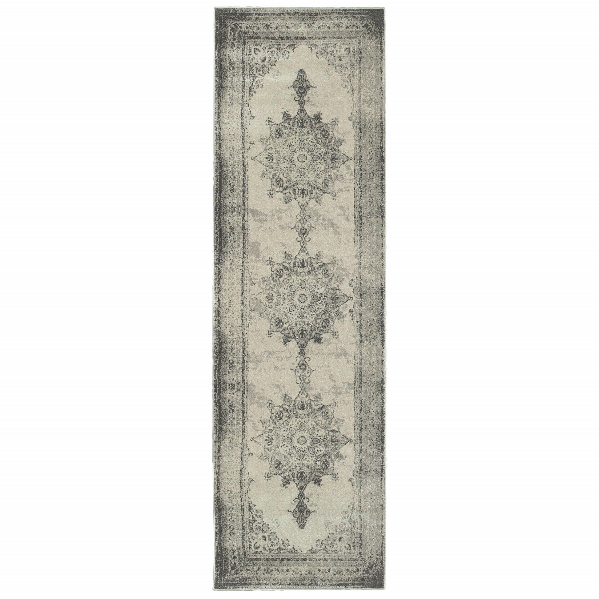 5’X8’ Ivory And Gray Pale Medallion Area Rug