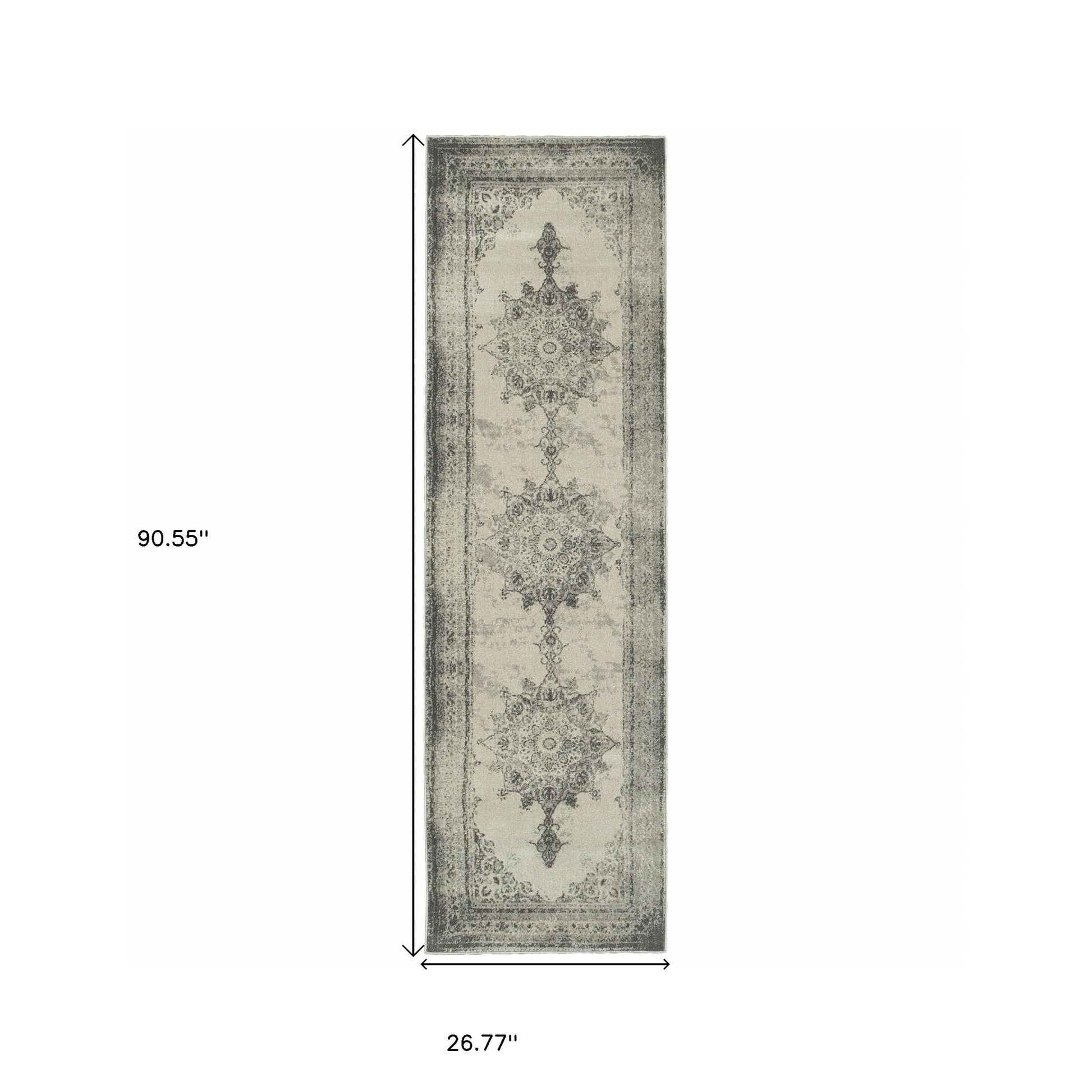Integrate an aura of classic sophistication to your space with this charismatic Ivory and Gray Pale Medallion Area Rug that will remain trendy and timeless at the same time with its subtle color palette. The muted hues of ivory and gray accentuating oriental patterns with a centered medallion to achieve an understated elegance. Durability and easy care being the priority, this rug is beautifully machine-woven in 100% polypropylene with a low pile construction to provide a soft underfoot at home. Emanating an essence of traditional opulence, this neutral-toned area rug will seamlessly blend in a conventional setting without disrupting the harmony of the decors. 0.32” x 62.99” x 90.55”