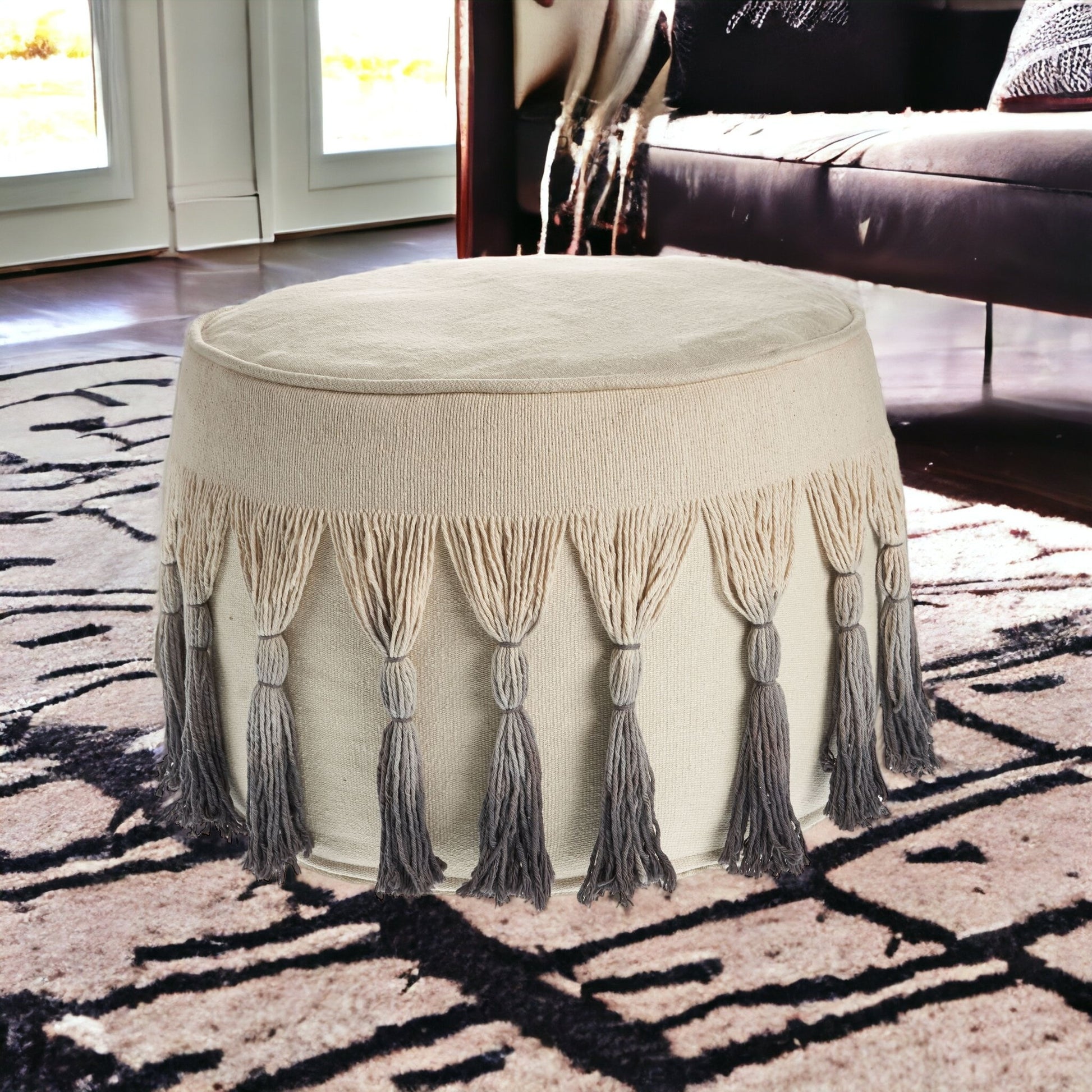 Optimize your space and add some charm to your room with the 20-inch beige 100% cotton ottoman. Ottomans are multi-functional additions to your space that add fashion and practical value. 14-inch H x 20-inch W x 20-inch D