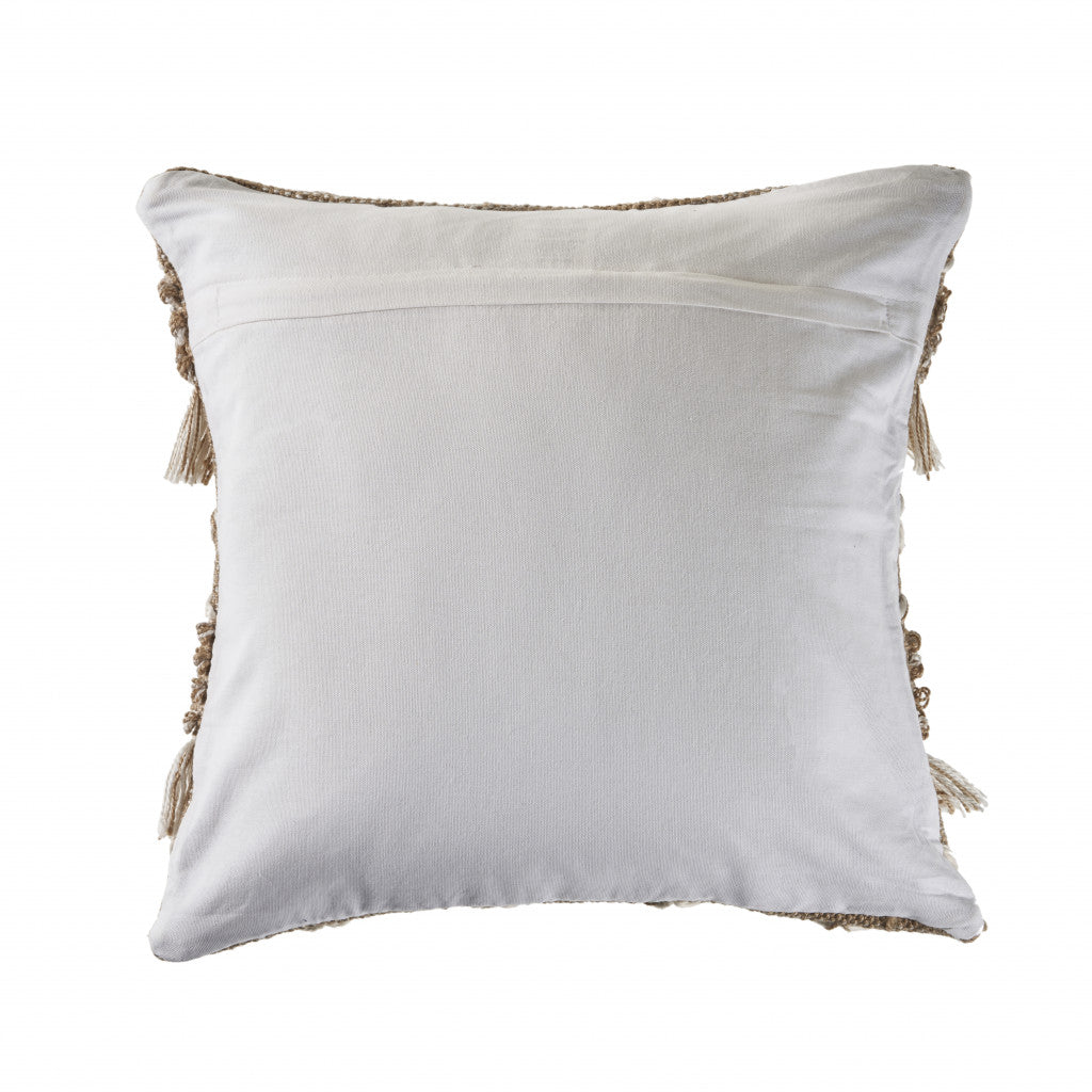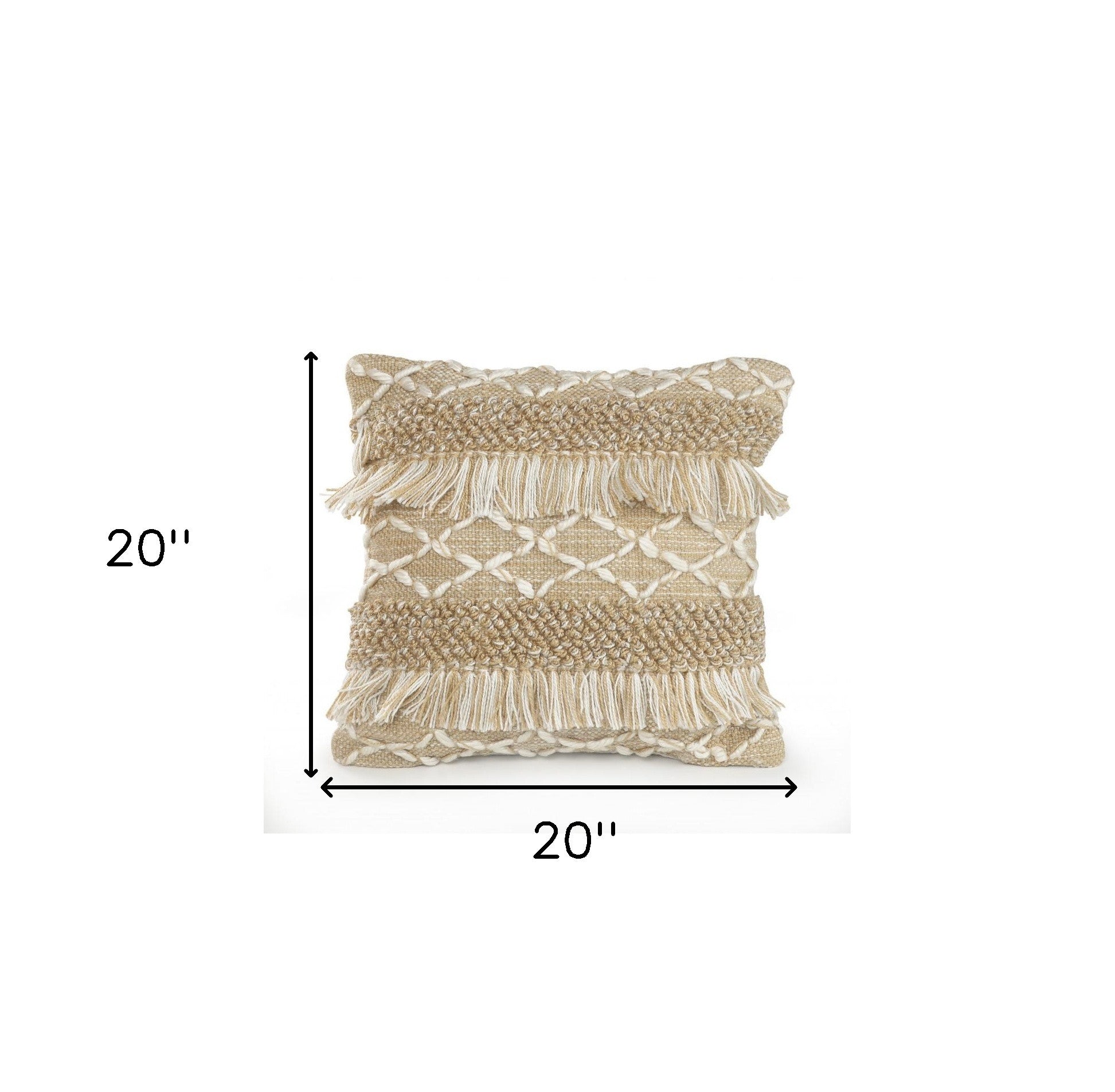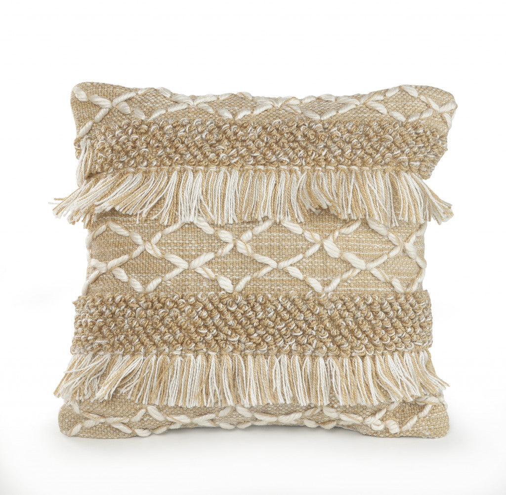 20" X 20" Beige And White Polyester Geometric Zippered Pillow