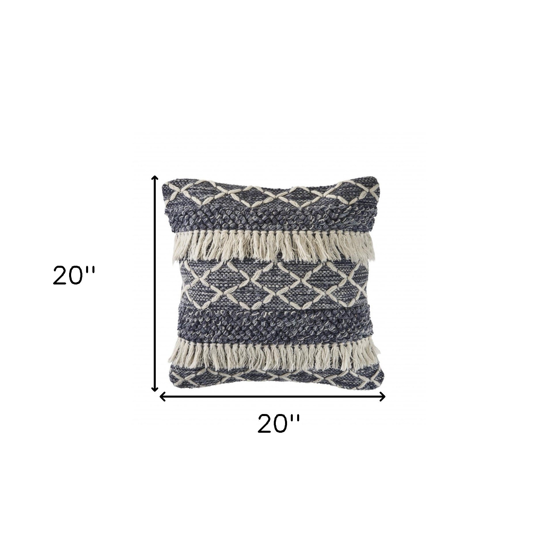 20" X 20" Beige And White Polyester Geometric Zippered Pillow