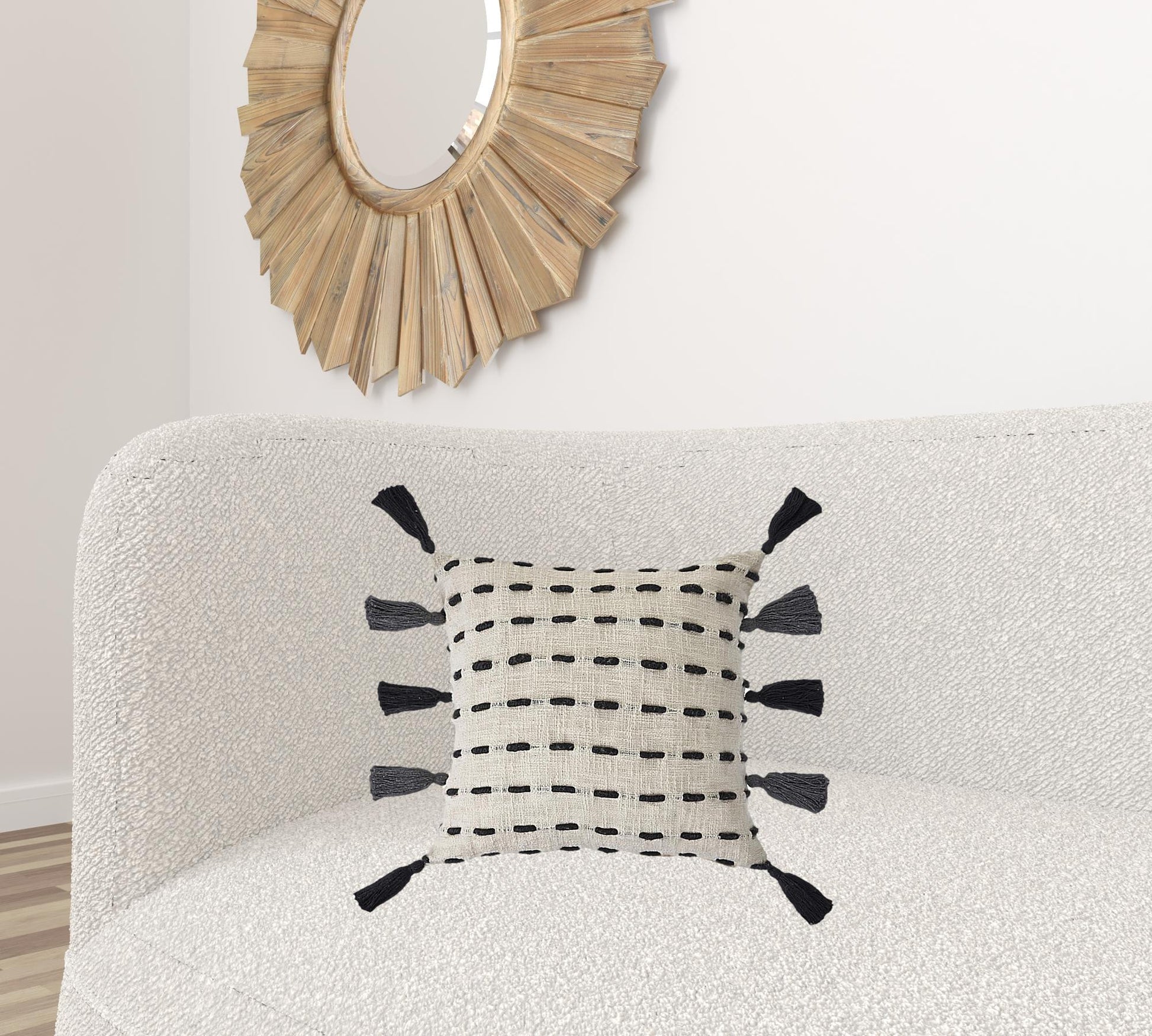20" X 20" Black And Cream 100% Cotton Geometric Zippered Pillow