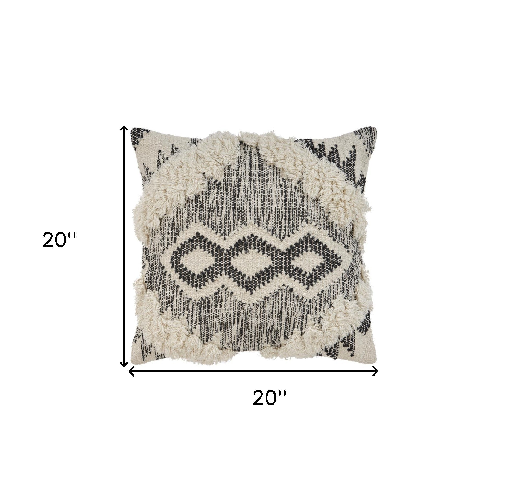 20" X 20" Black and Ivory Linen Cotton Blend Zippered Pillow