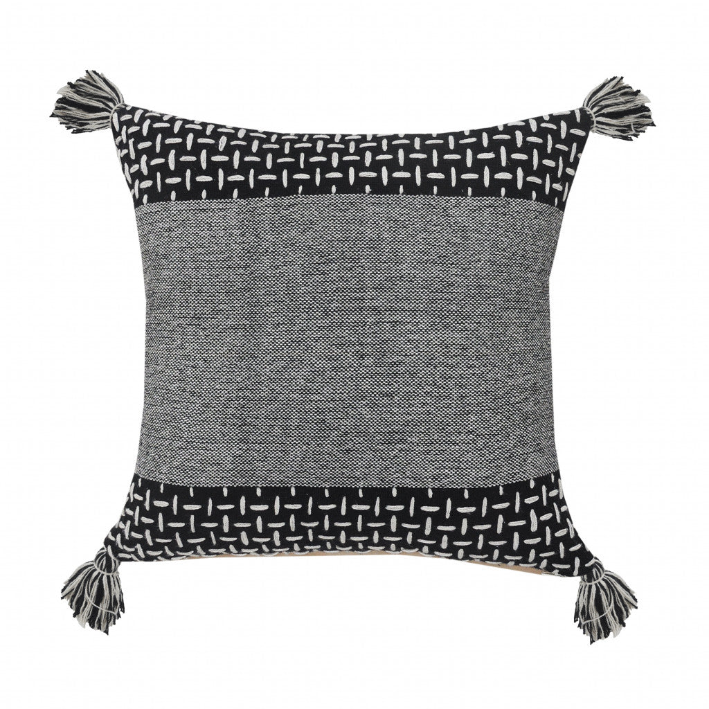 Bring a bit of fashion and zip to your space with this eye-catching and comfy 20" x 20" black and white 100% cotton geometric zippered pillow. Soft and textural black and white 100% cotton has been used to make this pillow look and feel like a real treasure. Great to use on its own or mix with other decorations for the perfect look. Decorative pillows are a great way to change up the look and feel of your space easily and quickly. 4" H x 20" W x 20" D