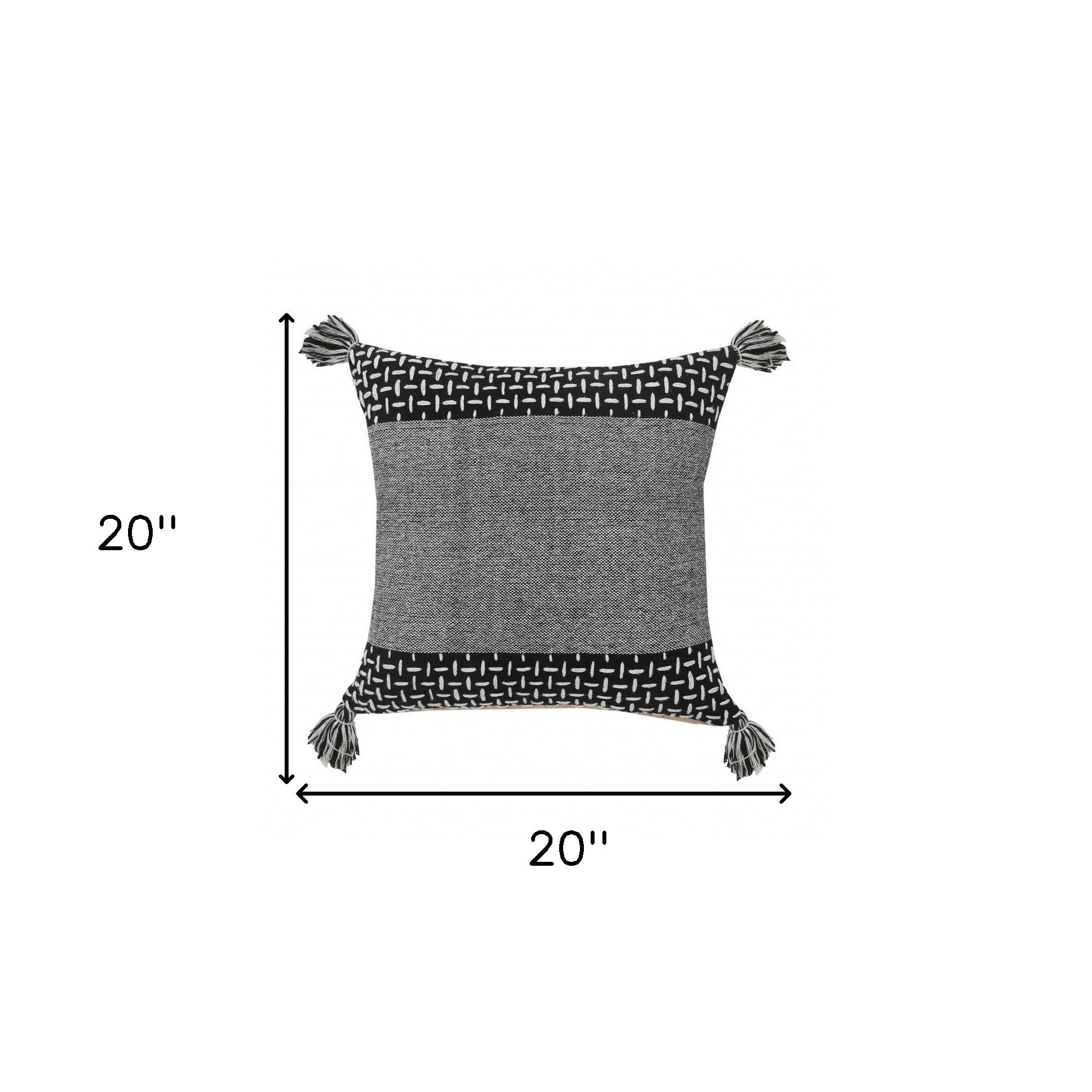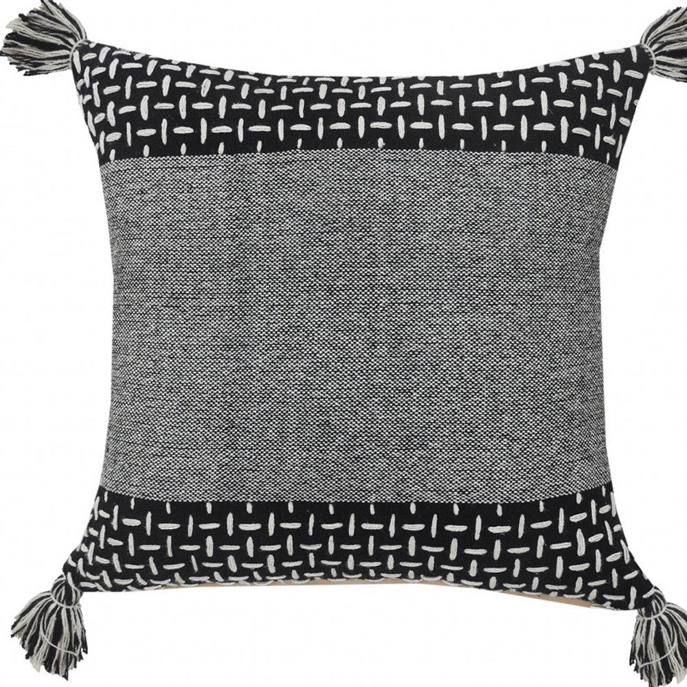 20" X 20" Black And White 100% Cotton Geometric Zippered Pillow