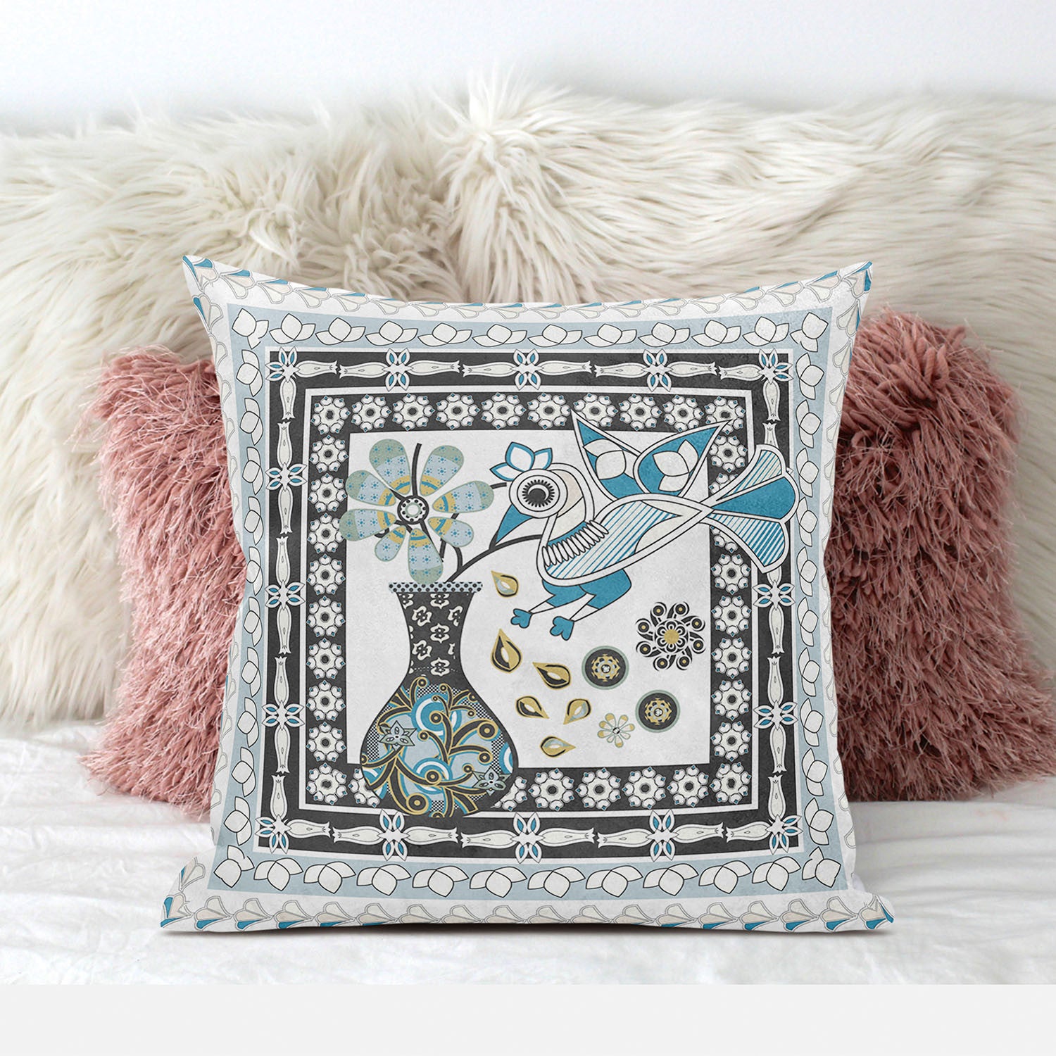 20" X 20" Black and White Peacock Broadcloth Floral Zippered Pillow