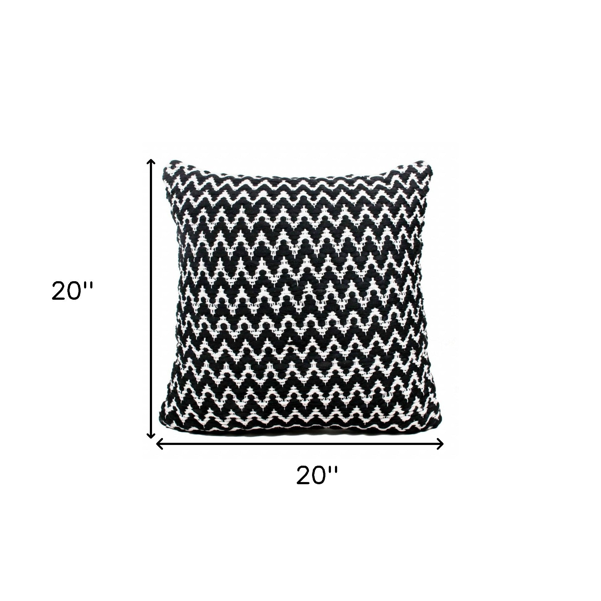 20" X 20" Black And White Polyester Chevron Zippered Pillow
