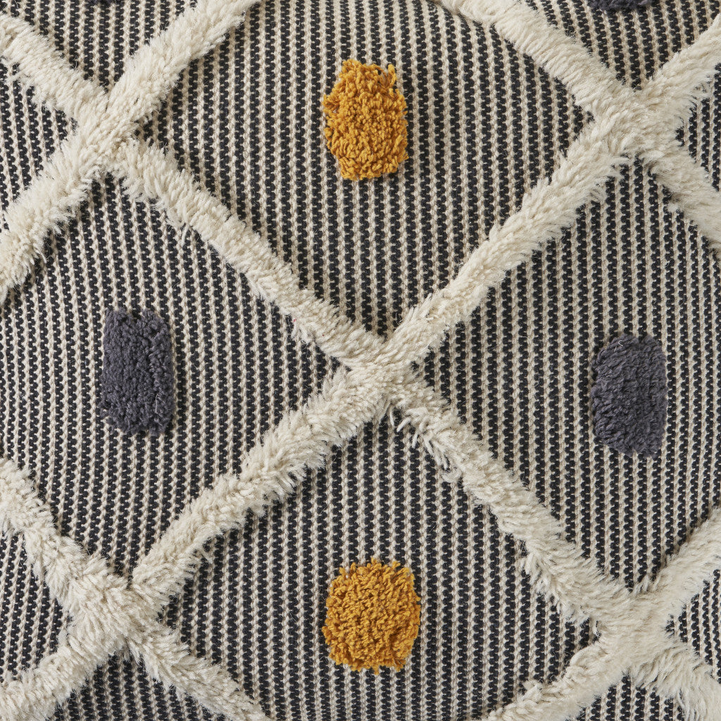 This 20" x 20" black gray yellow and off-white 100% cotton geometric zippered pillow will add a beautiful decorative accent to your decor. This super soft decorative pillow is expertly made of high grade, long lasting 100% cotton in a black gray yellow and off-white coloration. Decorative throw pillows not only add color and dimension to your space but can be comfy and supportive when you are lounging and cuddling as well. A great decorative accessory for your favorite chair, to accent your sofa, or to use as part of your bed ensemble. 4" H x 20" W x 20" D