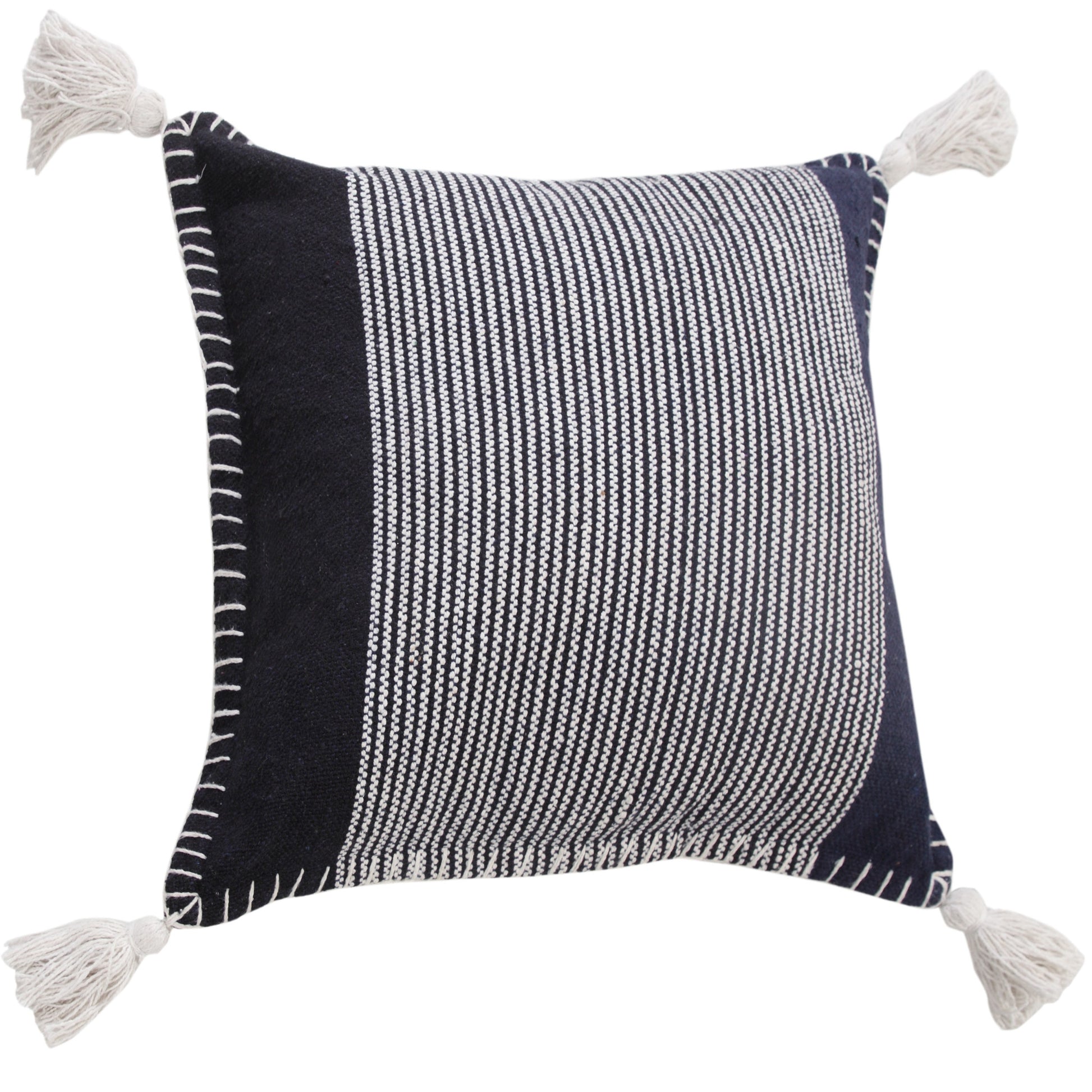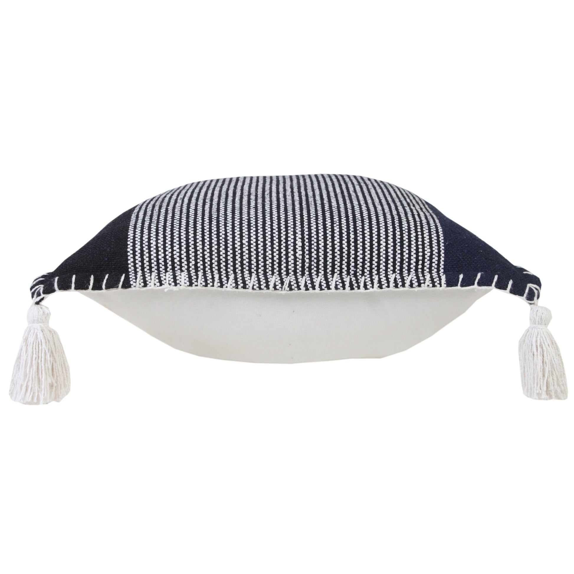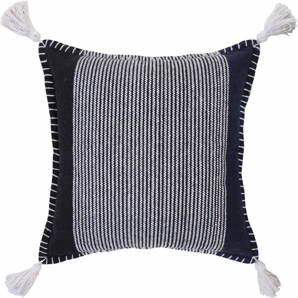 The perfect complement to your sofa, favorite chair, or bed, this 20" x 20" black navy and white 100% cotton striped zippered pillow is a great decorative accent. Soft and textural black navy and white 100% cotton has been used to make this pillow look and feel like a real treasure. Great to use on its own or mix with other decorations for the perfect look. A great decorative accessory for your favorite chair, to accent your sofa, or to use as part of your bed ensemble. 4" H x 20" W x 20" D