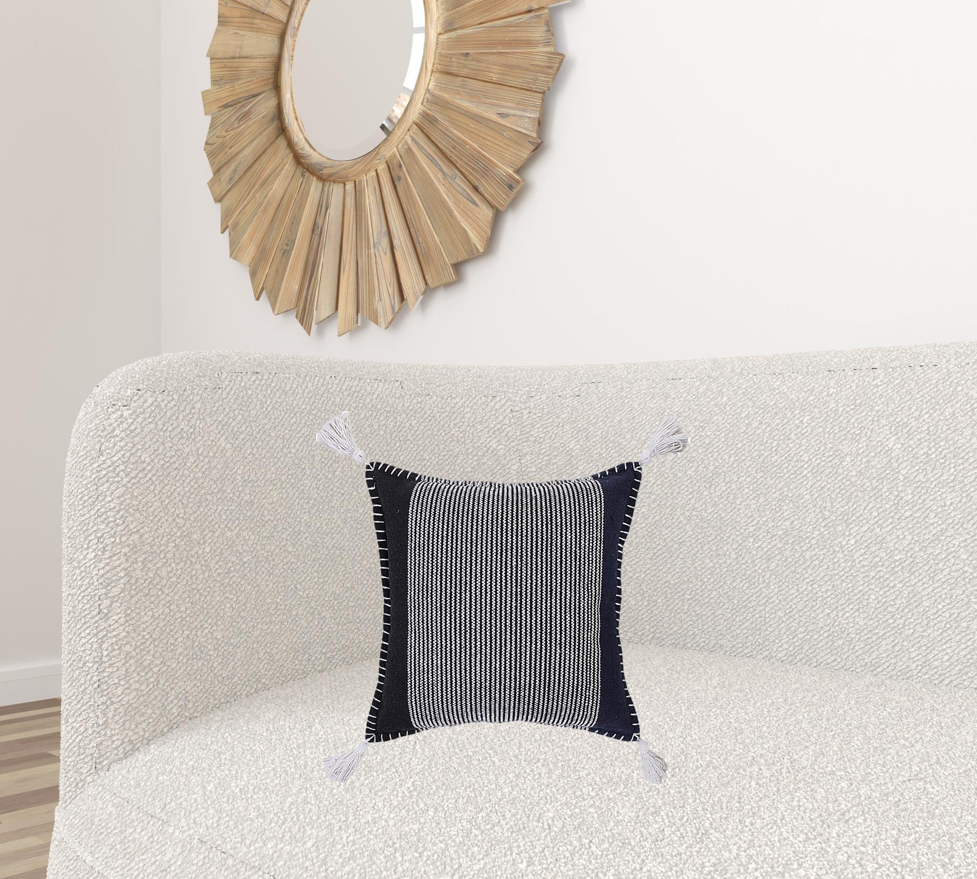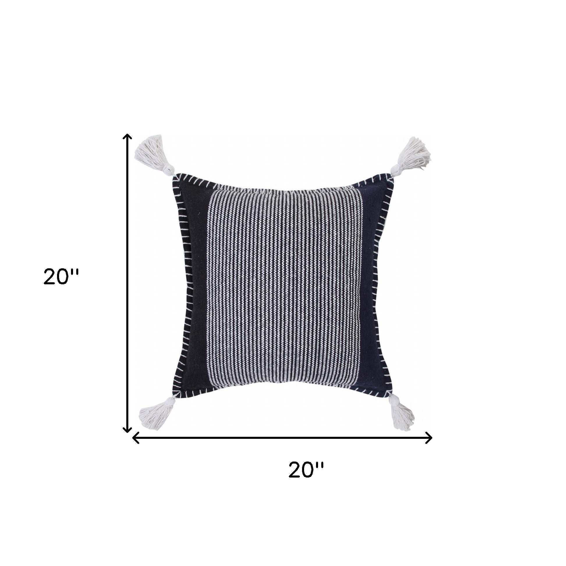 20" X 20" Black Navy And White 100% Cotton Striped Zippered Pillow