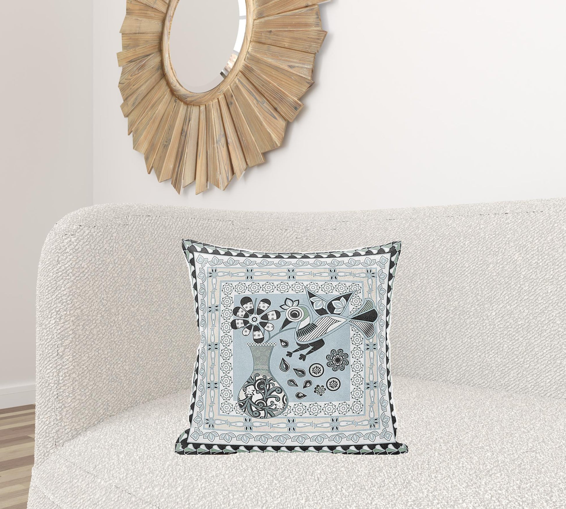 20" X 20" Blue and Black Peacock Broadcloth Floral Zippered Pillow