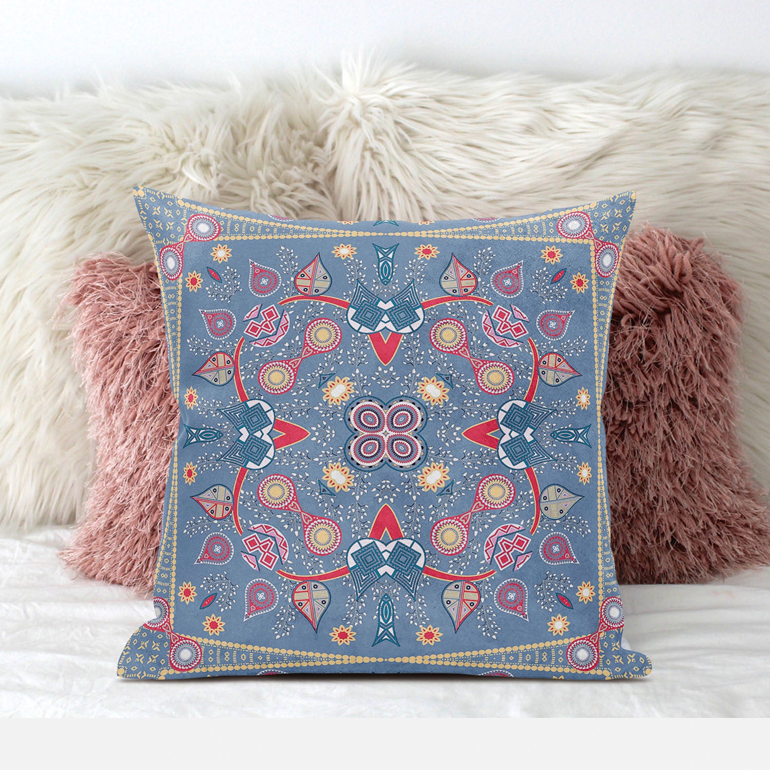 20" X 20" Blue and Gold Broadcloth Paisley Zippered Pillow