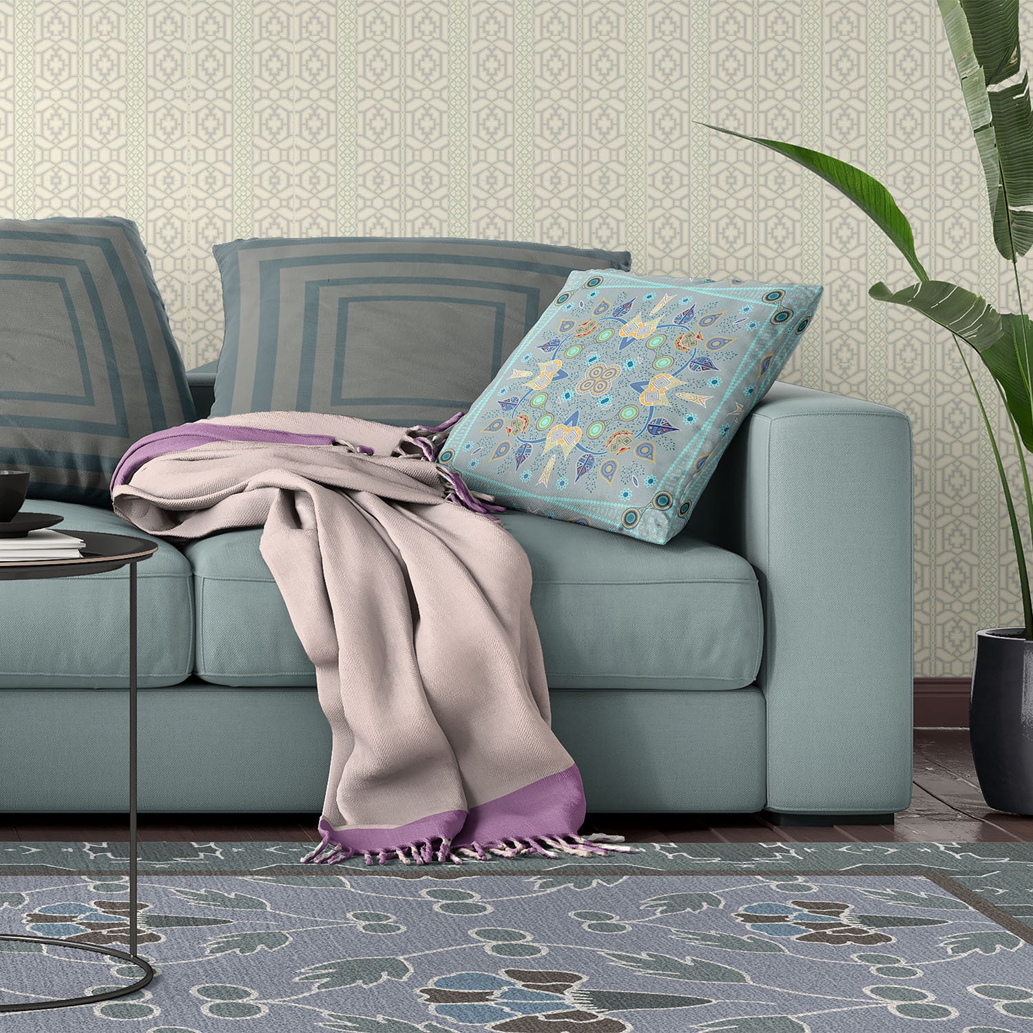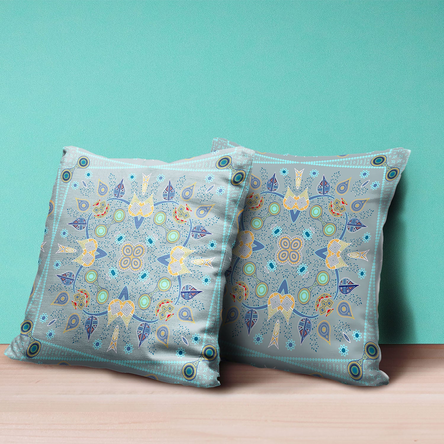 20" X 20" Blue and Gray Broadcloth Paisley Zippered Pillow