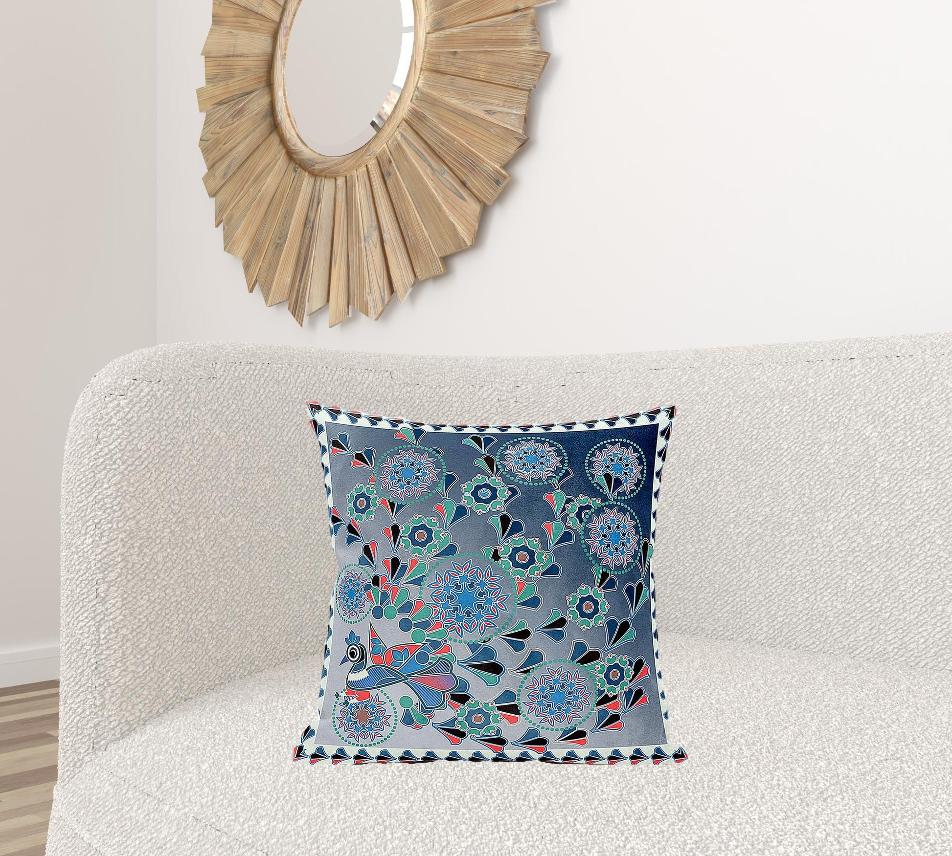 20" X 20" Blue and Green Peacock Broadcloth Floral Zippered Pillow