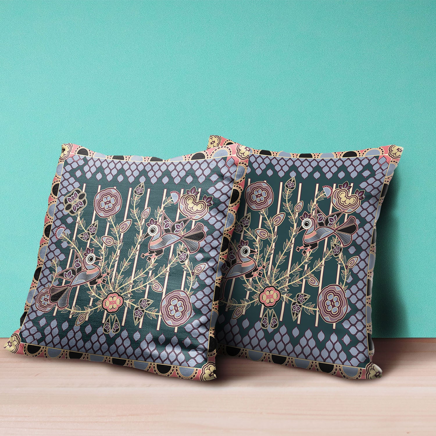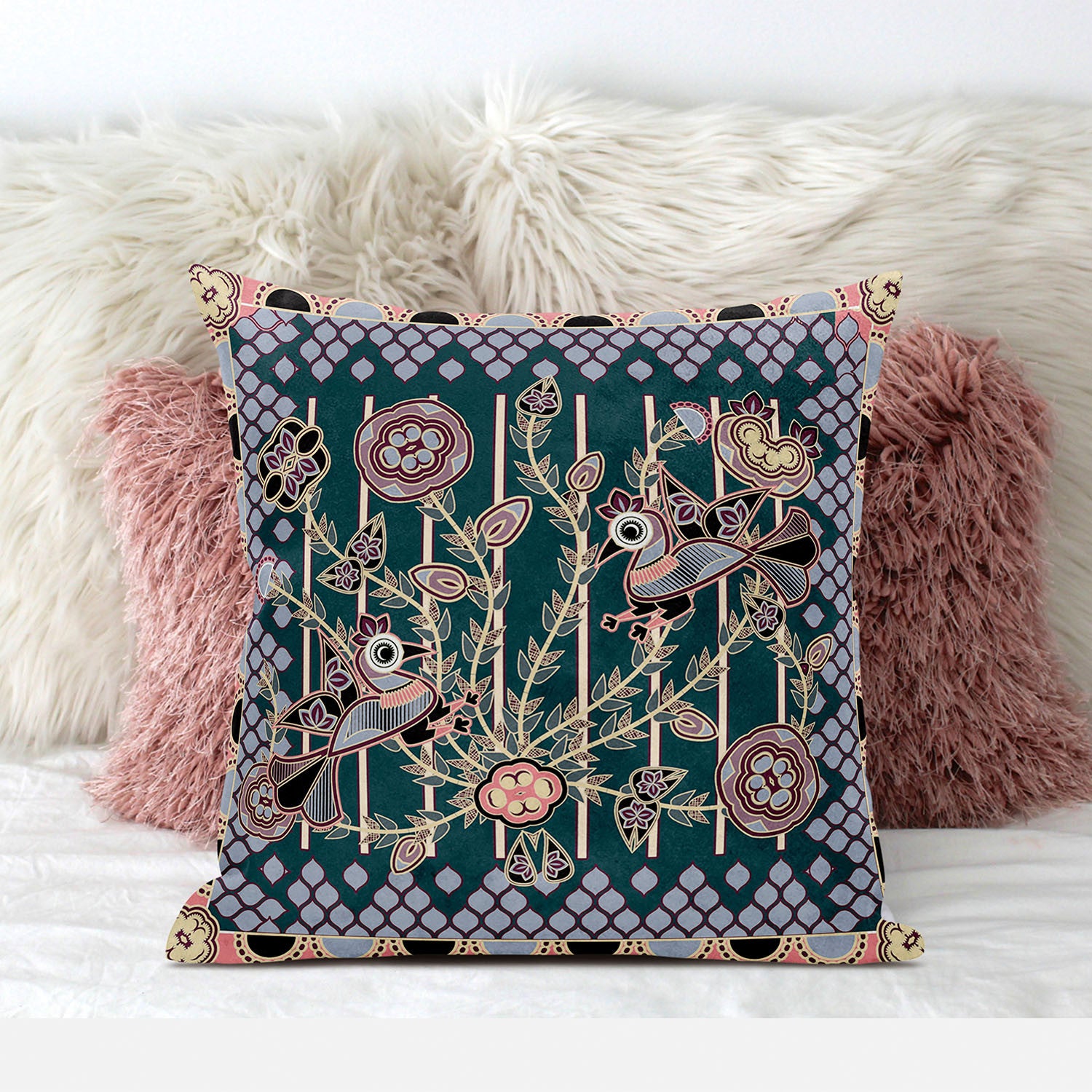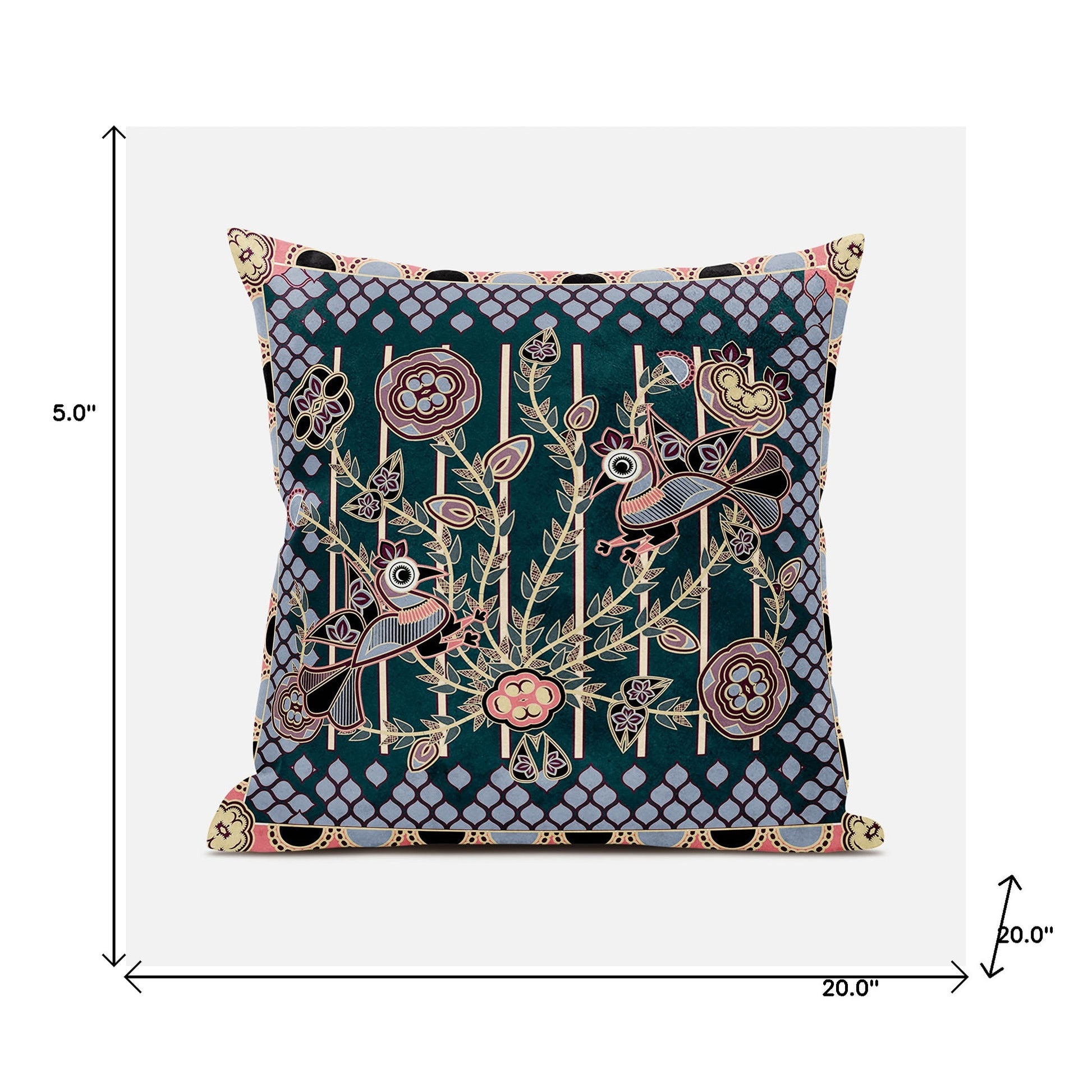 20" X 20" Blue and Green Peacock Broadcloth Floral Zippered Pillow
