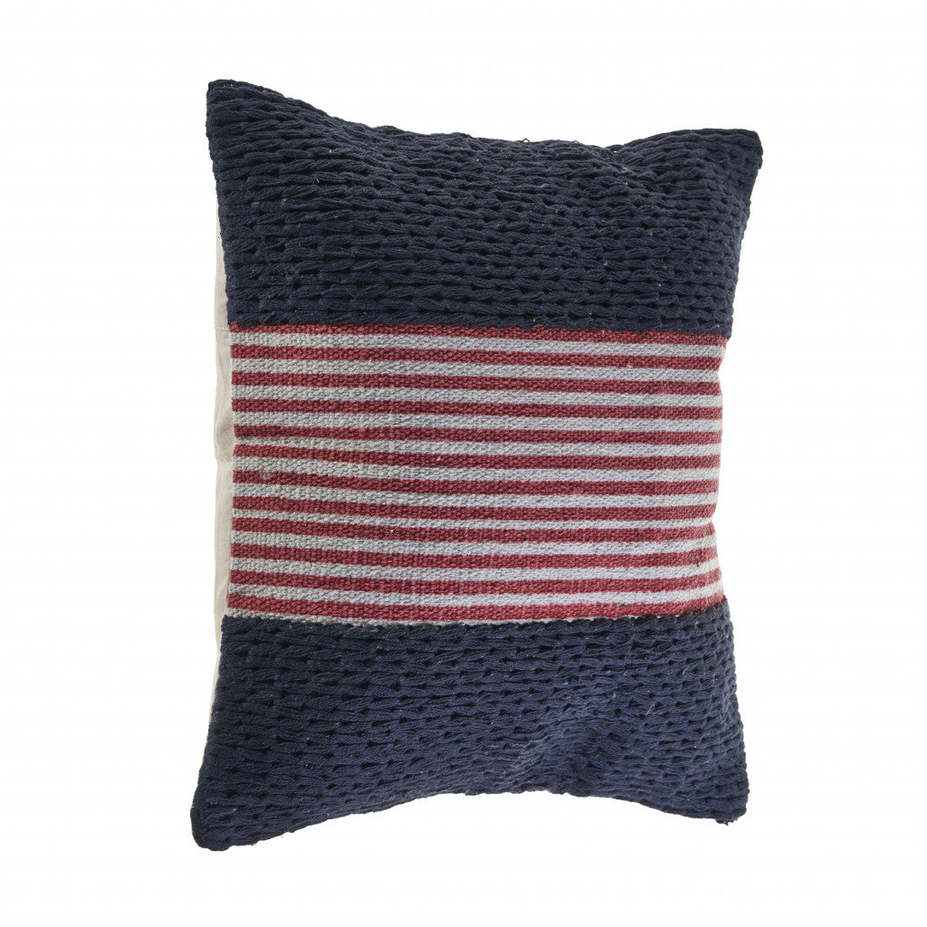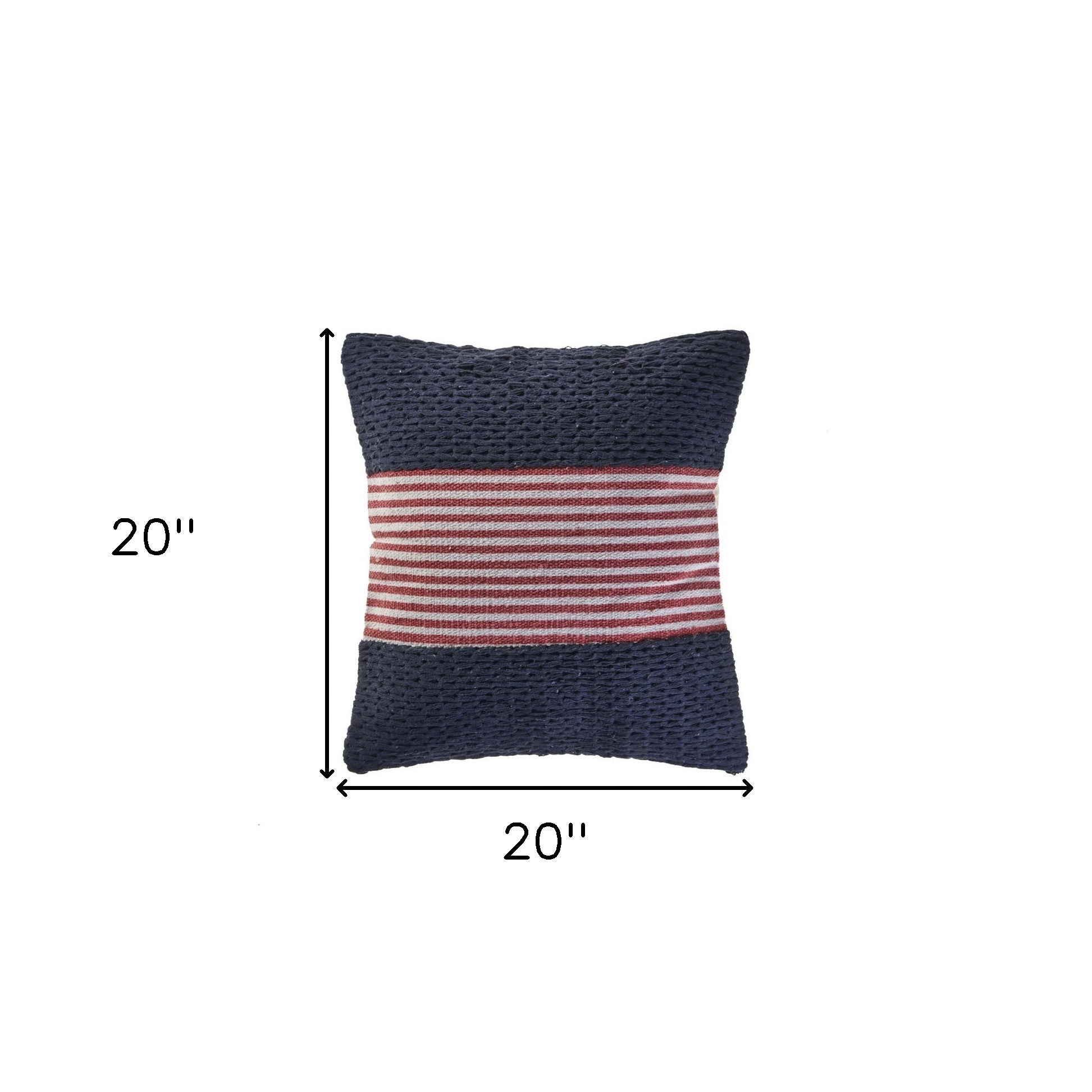 Unique and decorative, this comfortable 20" x 20" blue and red 100% cotton striped zippered pillow will leave a lasting impression. The blue and red coloring of the soft and long lasting 100% cotton will add dimension and texture to your space. For anyone that loves to decorate or accent their space with color and texture. Decorative pillows are a great way to change up the look and feel of your space easily and quickly. 4" H x 20" W x 20" D