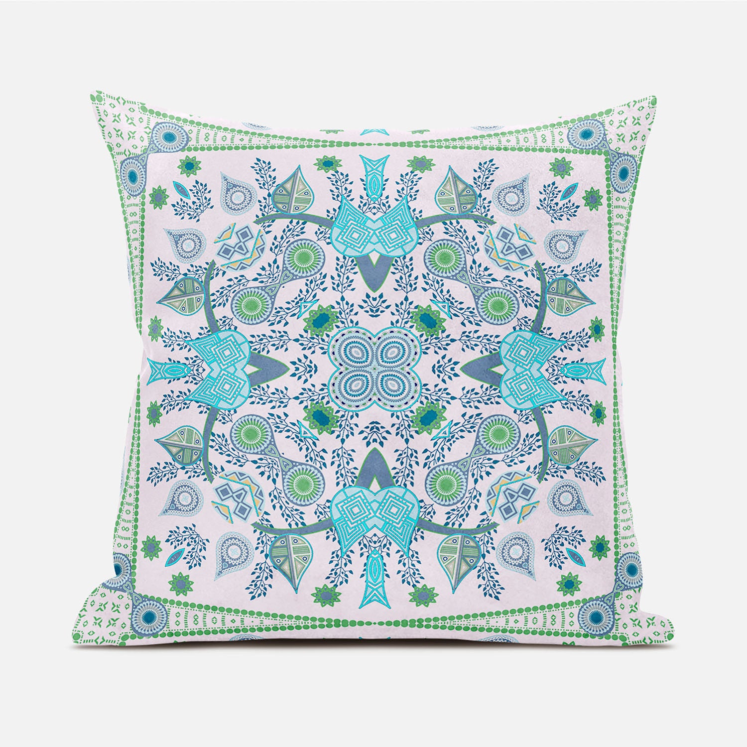 20" X 20" Blue and White Broadcloth Paisley Zippered Pillow