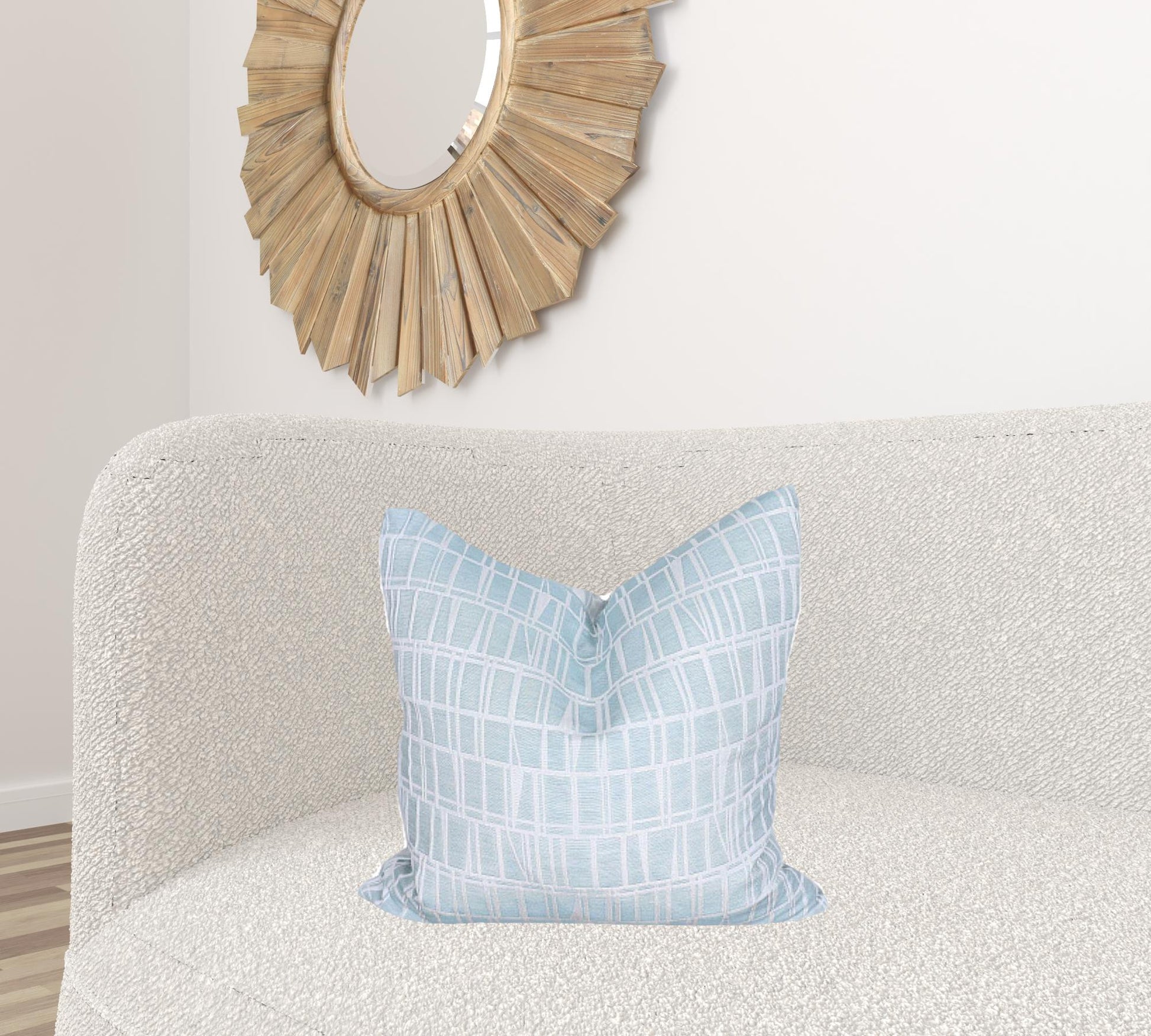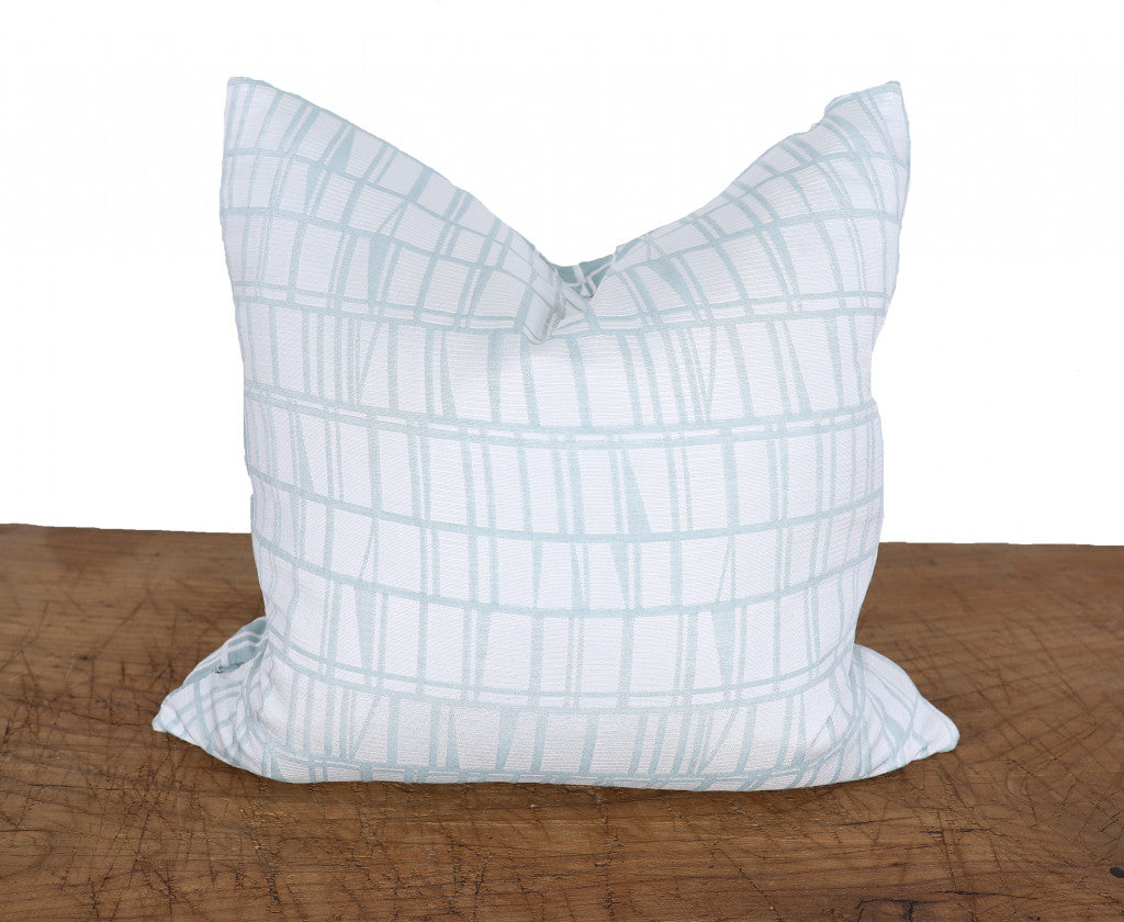 20" X 20" Blue and White Geometric Polyester Zippered Pillow