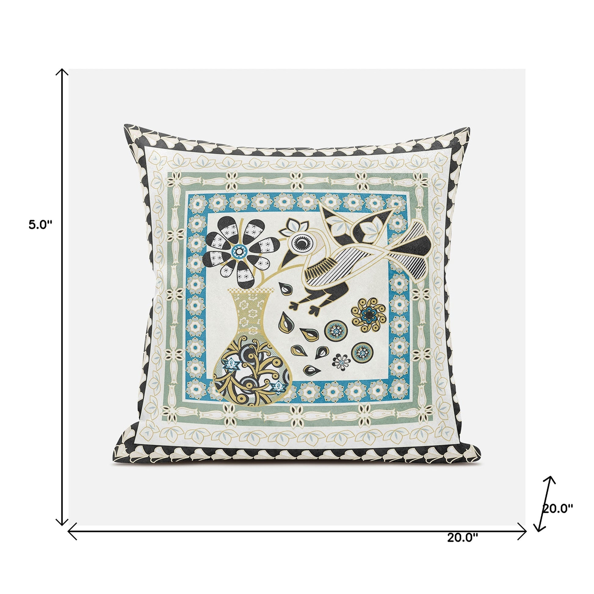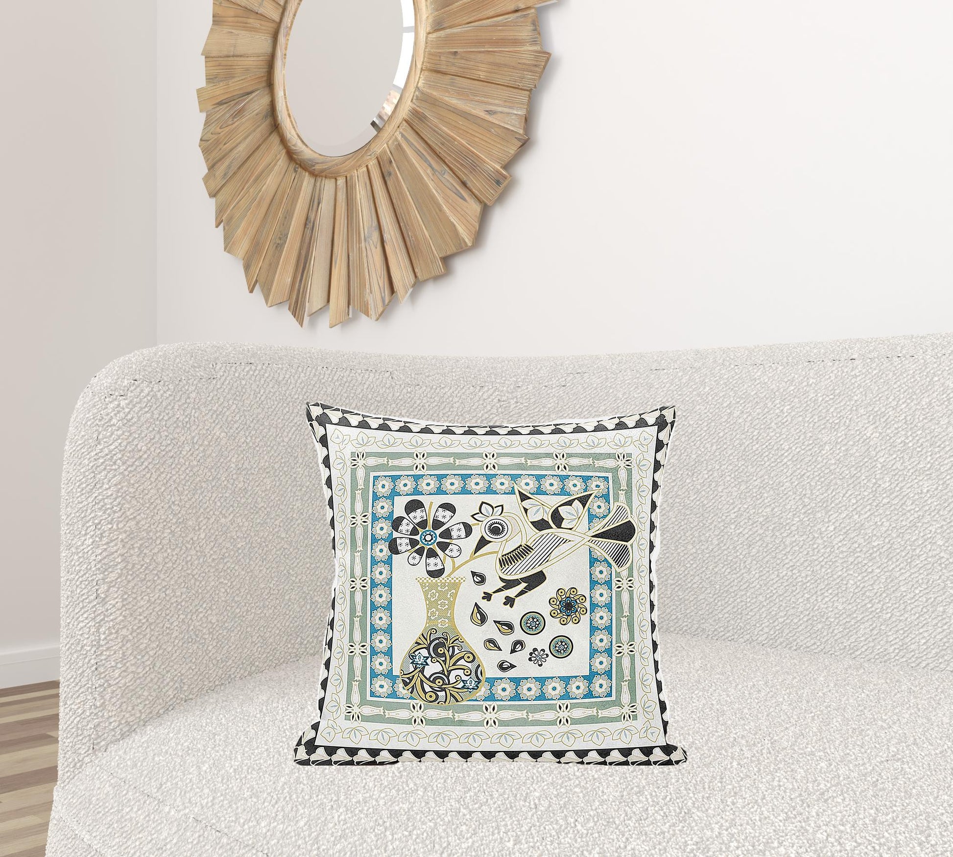 20" X 20" Blue and Yellow Peacock Broadcloth Floral Zippered Pillow