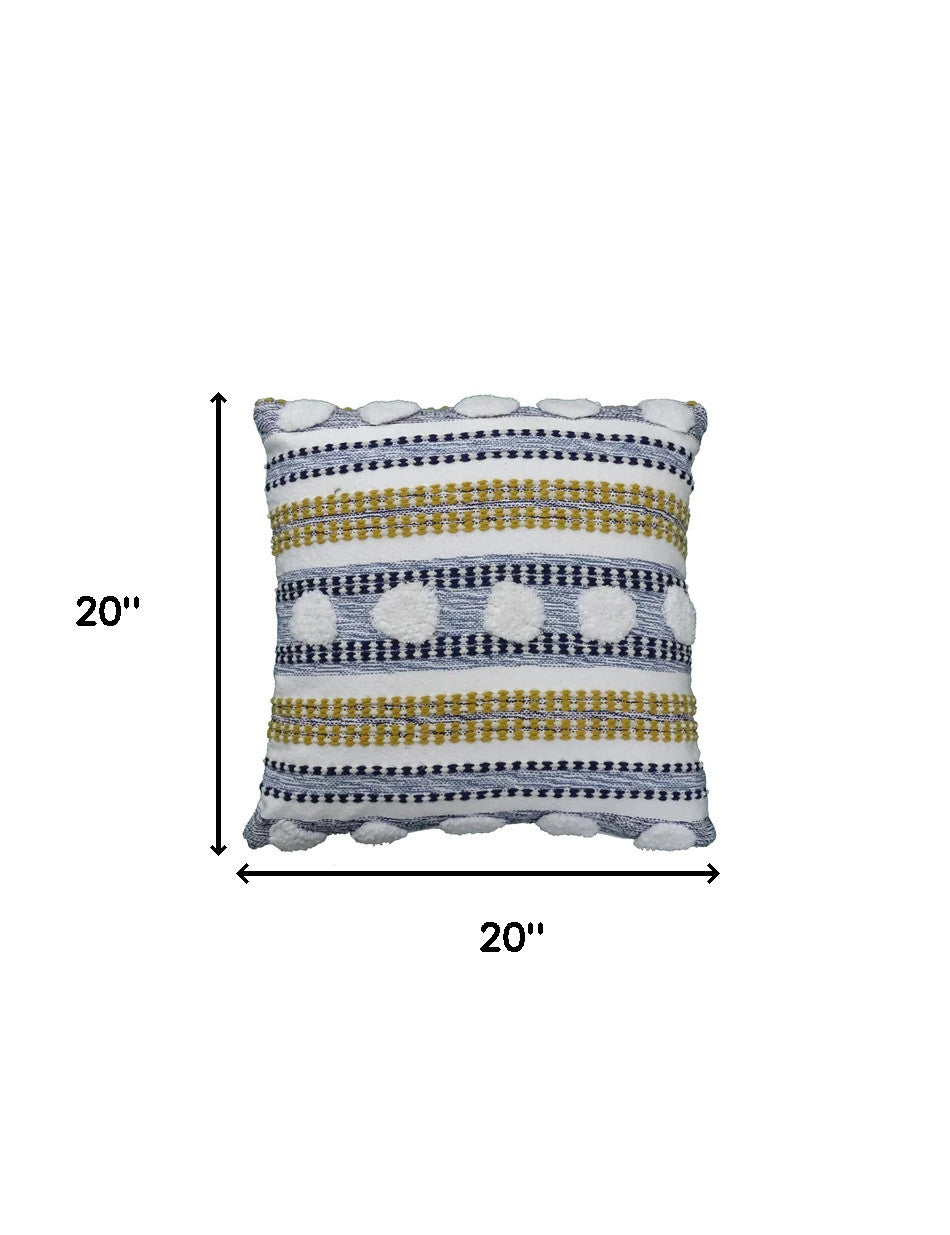 20" X 20" Blue And Yellow Ribbed Zippered Cotton Blend Throw Pillow