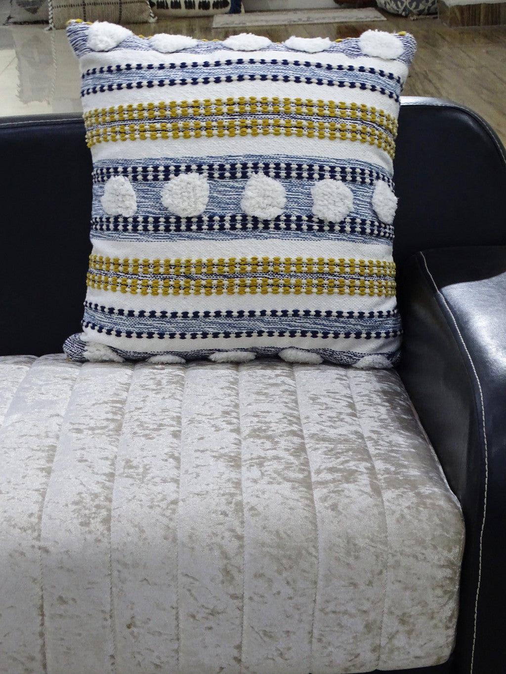Keywords | cotton blend ribbed throw pillow, ribbed throw pillow, blend ribbed throw pillow, 20" X 20" blue yellow zippered cotton, yellow zippered cotton blend ribbed |