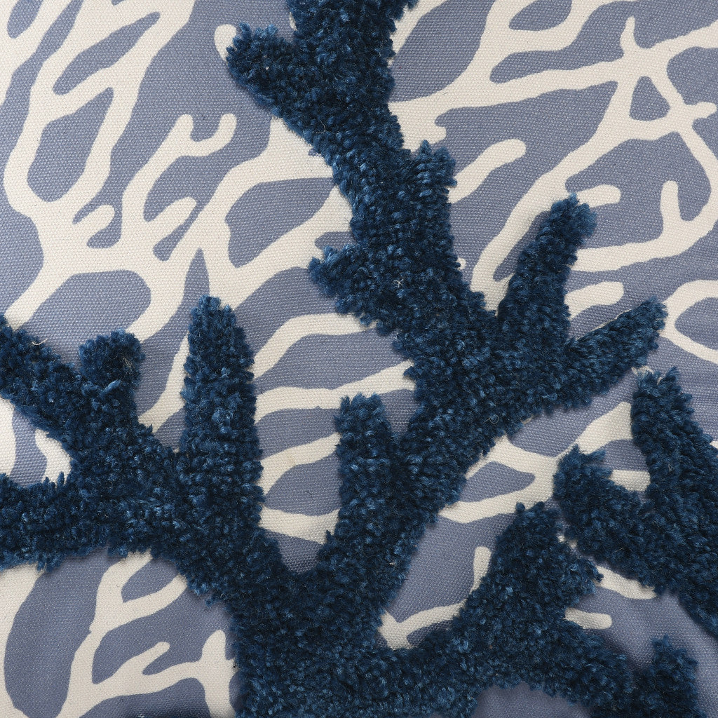 20" X 20" Blue Polyester Floral Zippered Pillow