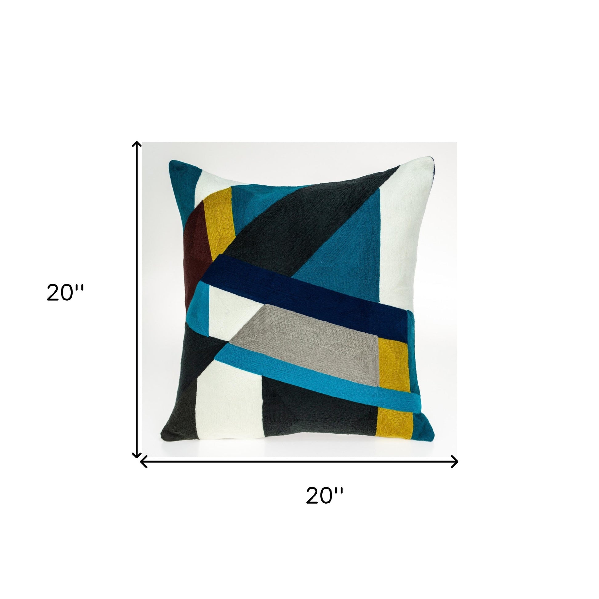 20" X 20" Blue Zippered 100% Cotton Throw Pillow
