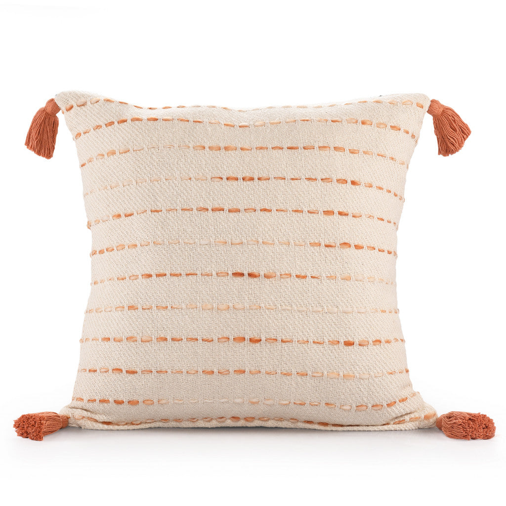 Add an air of fashion to your room and rejuvenate the space with this cute and fashionable 20" x 20" coral and ivory 100% cotton striped zippered pillow. The coral and ivory coloring of the soft and long lasting 100% cotton will add dimension and texture to your space. Decorative throw pillows not only add color and dimension to your space but can be comfy and supportive when you are lounging and cuddling as well. Decorative pillows are a great way to change up the look and feel of your space easily and quickly. 4" H x 20" W x 20" D