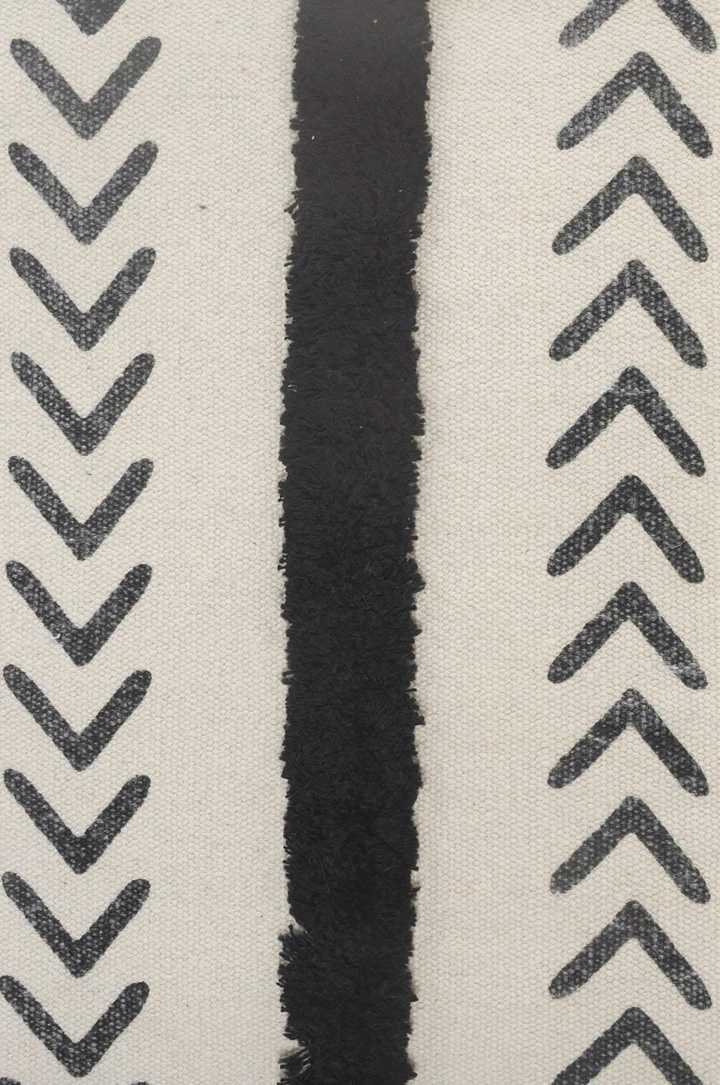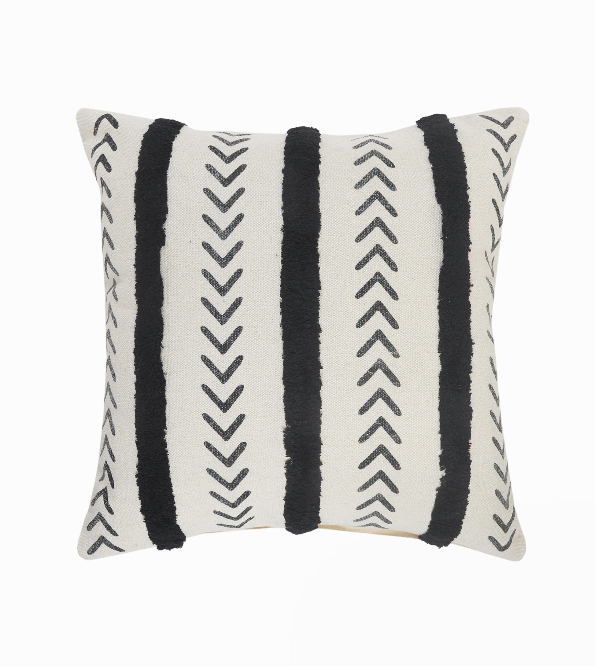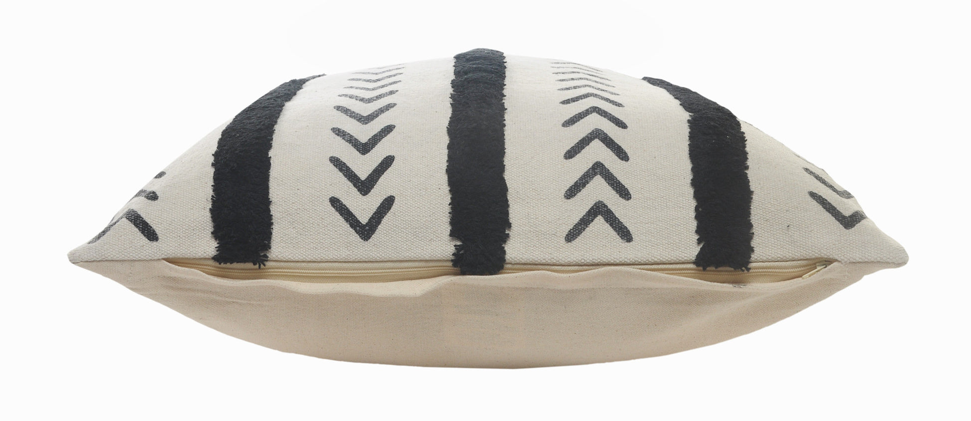 This 20" x 20" cream and black 100% cotton geometric zippered pillow will add a beautiful decorative accent to your decor. The cream and black coloring of the soft and long lasting 100% cotton will add dimension and texture to your space. For anyone that loves to decorate or accent their space with color and texture. A great decorative accessory for your favorite chair, to accent your sofa, or to use as part of your bed ensemble. 4" H x 20" W x 20" D