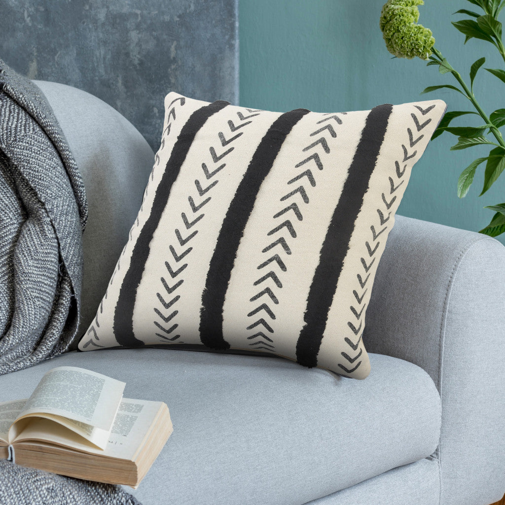 20" X 20" Cream And Black 100% Cotton Geometric Zippered Pillow
