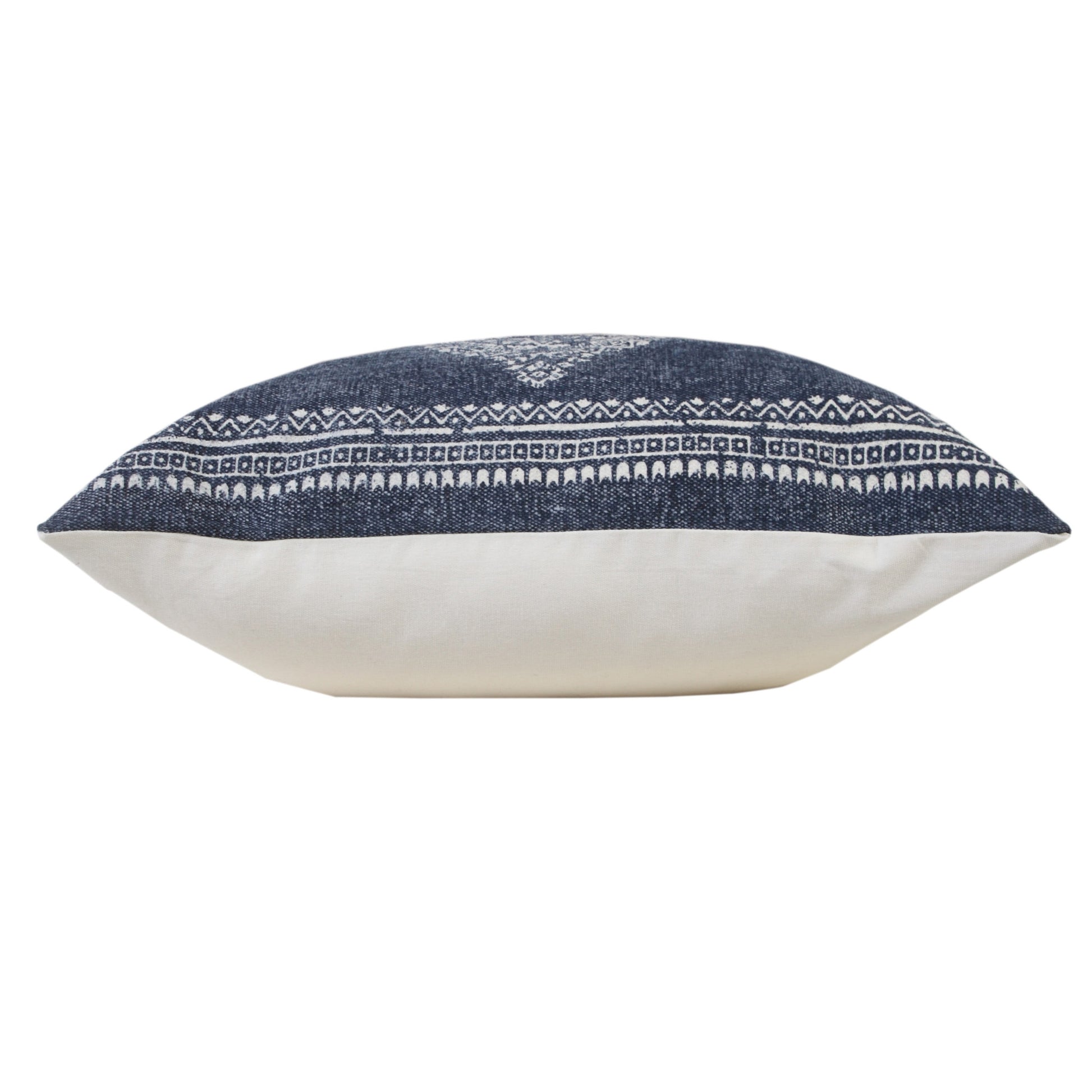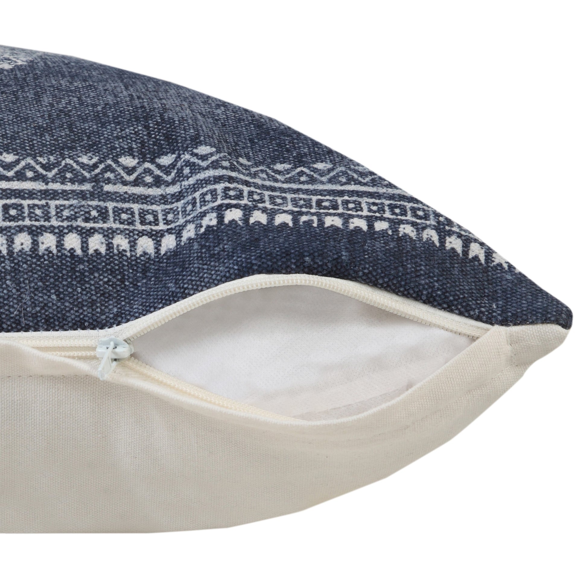 Bring a bit of fashion and zip to your space with this eye-catching and comfy 20" x 20" dark blue and white 100% cotton geometric zippered pillow. This dark blue and white colored decorative pillow is made from high grade 100% cotton that makes it super soft to the touch and long lasting. Decorative throw pillows not only add color and dimension to your space but can be comfy and supportive when you are lounging and cuddling as well. Decorative pillows are a great way to change up the look and feel of your space easily and quickly. 4" H x 20" W x 20" D