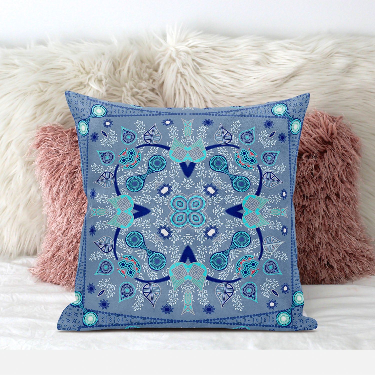 20" X 20" Dark Blue Broadcloth Paisley Zippered Pillow
