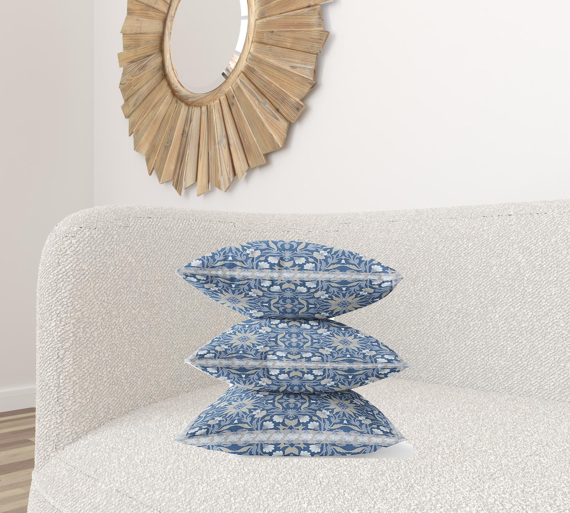 20" X 20" Dark Blue Gray Paisley Blown Seam Suede Throw Pillow