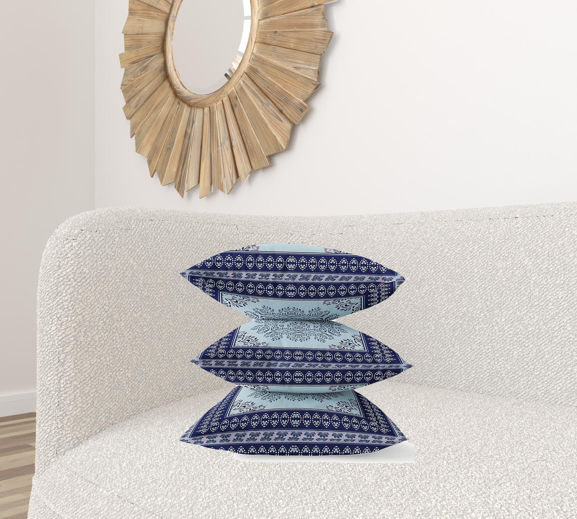 20" X 20" Dark Blue Light Green Geometric Blown Seam Suede Throw Pillow