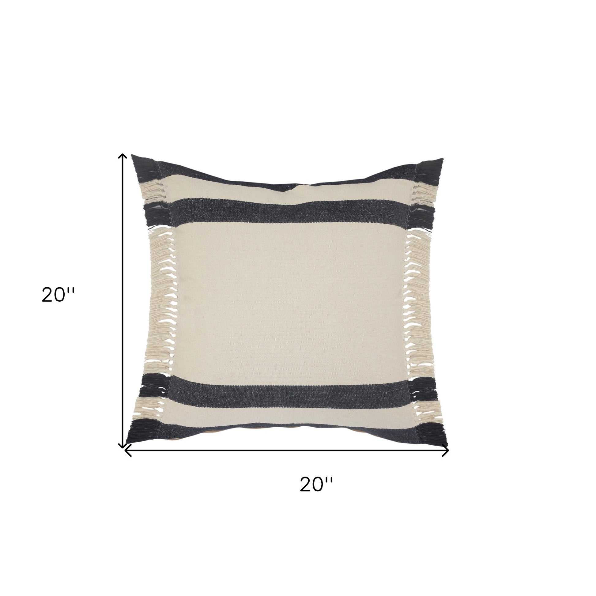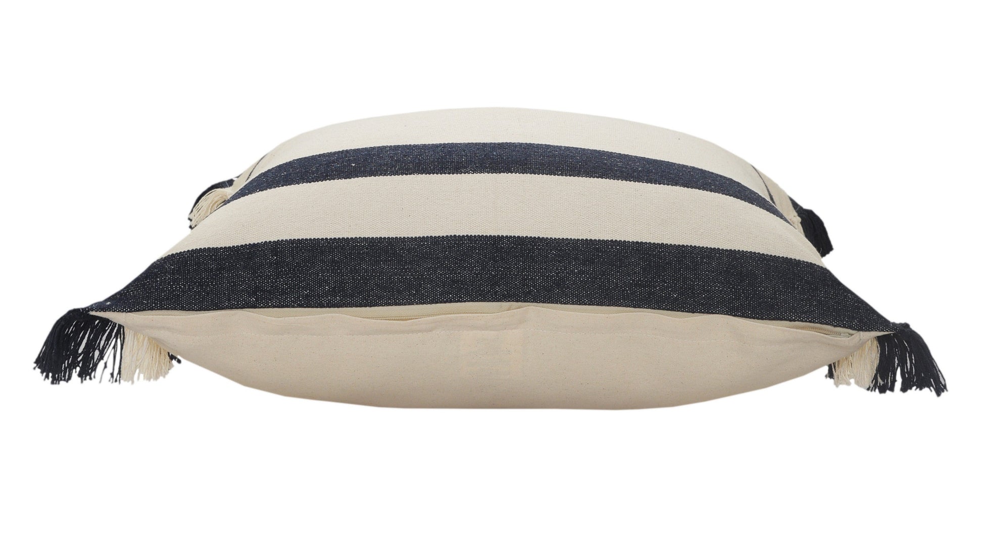 Unique and decorative, this comfortable 20" x 20" ensign blue white and linen 100% cotton striped zippered pillow will leave a lasting impression. This ensign blue white and linen colored decorative pillow is made from high grade 100% cotton that makes it super soft to the touch and long lasting. For anyone that loves to decorate or accent their space with color and texture. A great decorative accessory for your favorite chair, to accent your sofa, or to use as part of your bed ensemble. 4" H x 20" W x 20" D