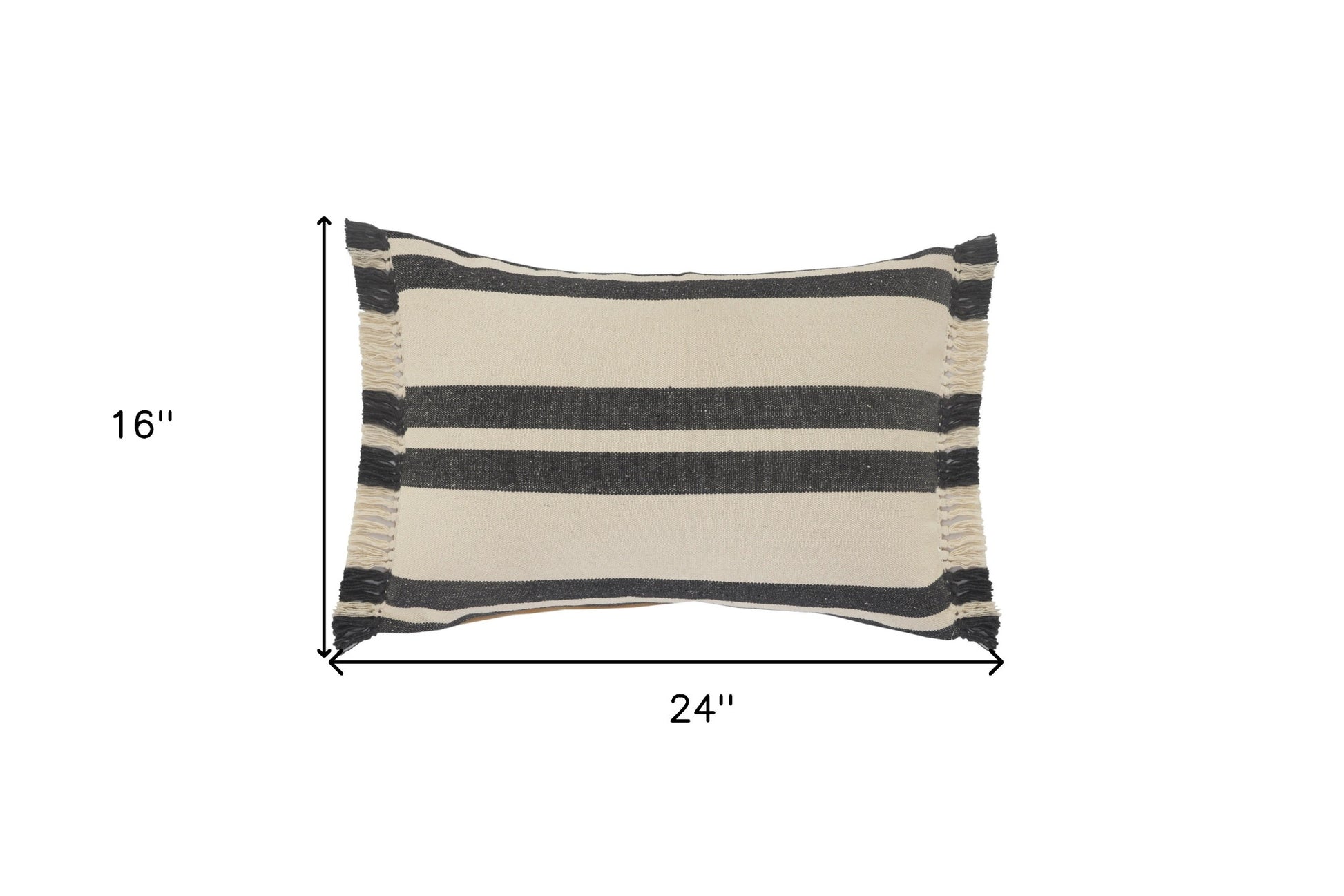 20" X 20" Ensign Blue White And Linen 100% Cotton Striped Zippered Pillow