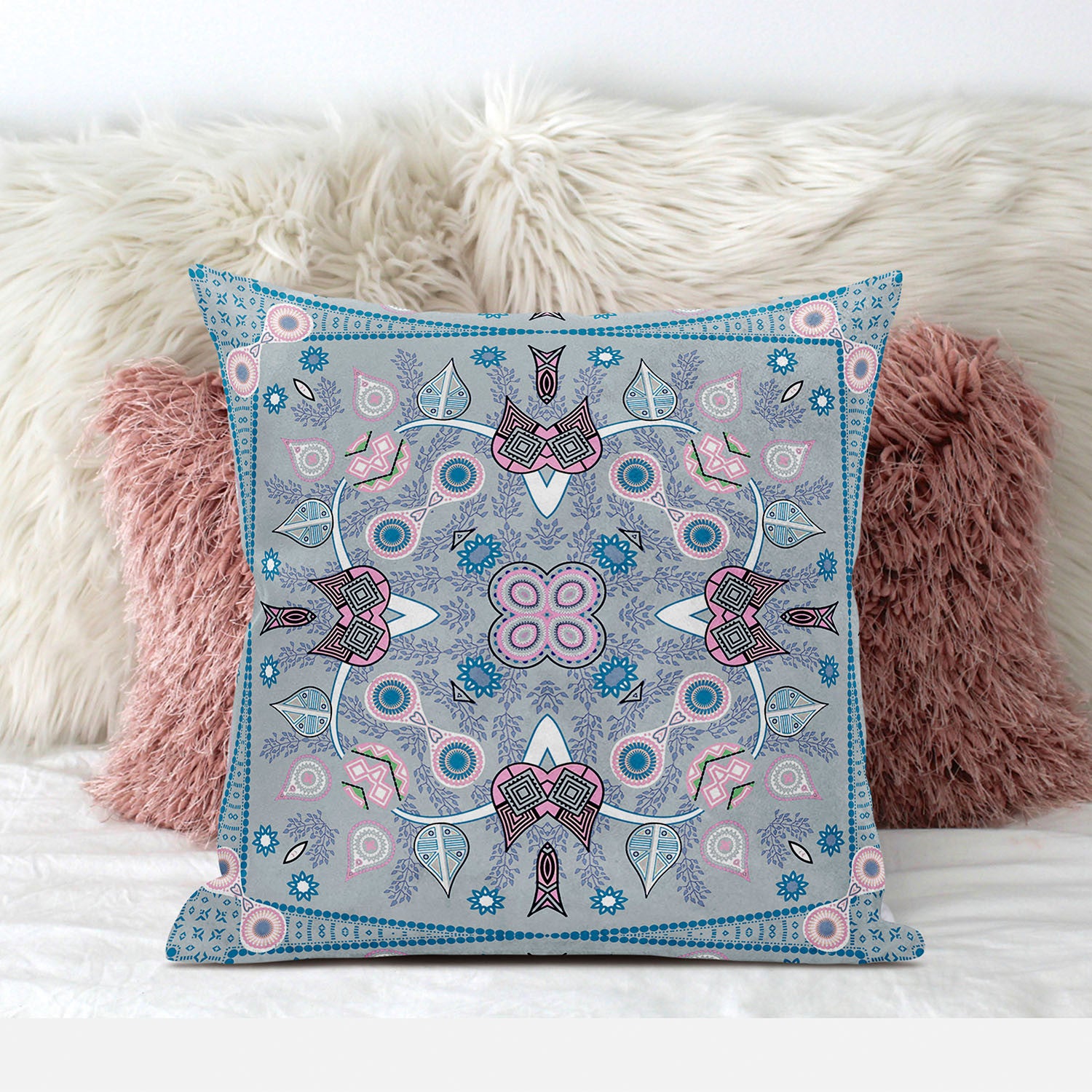20" X 20" Gray and Pink Broadcloth Paisley Zippered Pillow