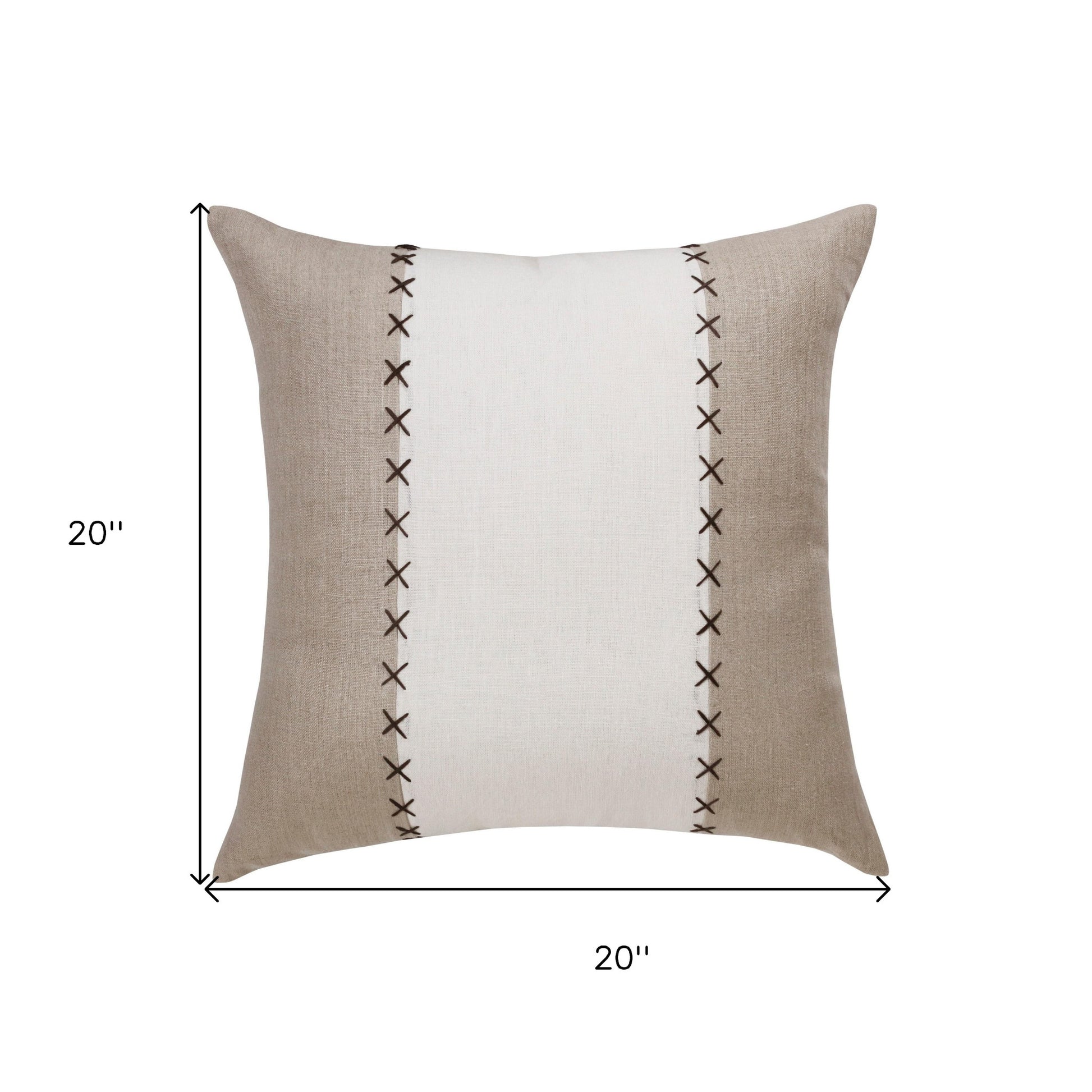 20" X 20" Gray And Tan Linen Patchwork Zippered Pillow