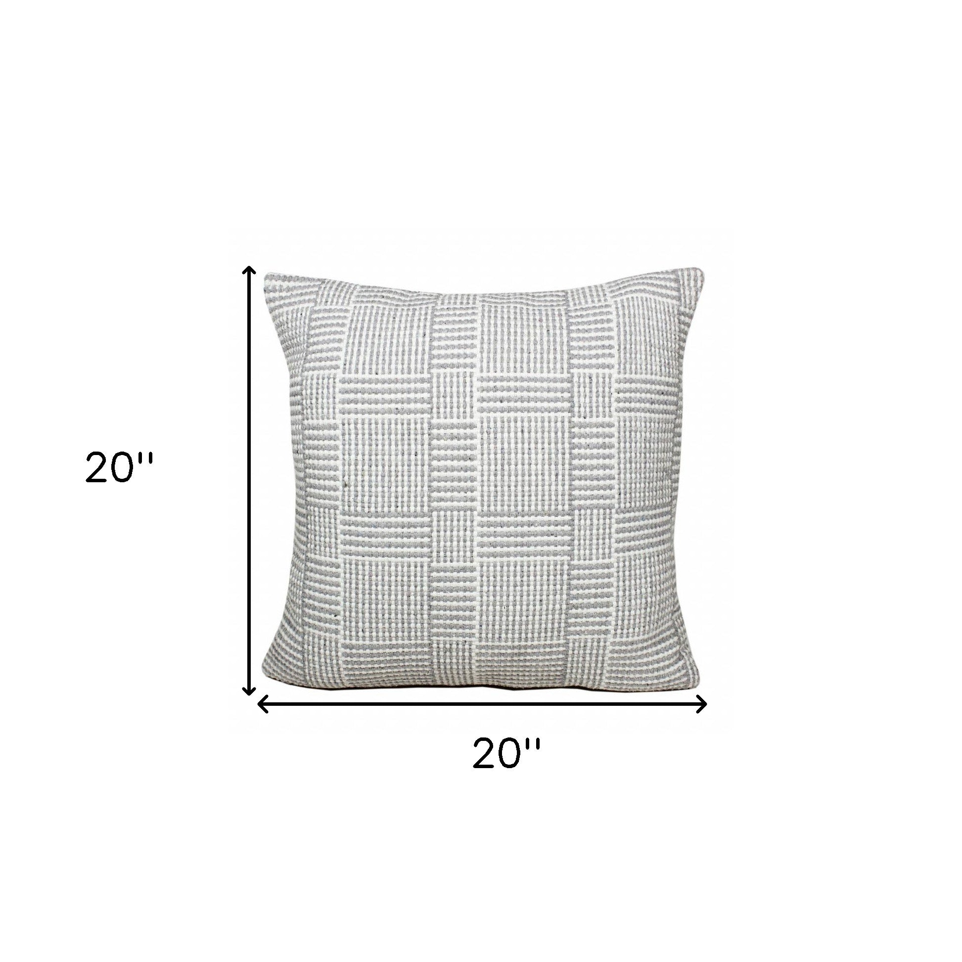 20" X 20" Gray And White 100% Cotton Geometric Zippered Pillow
