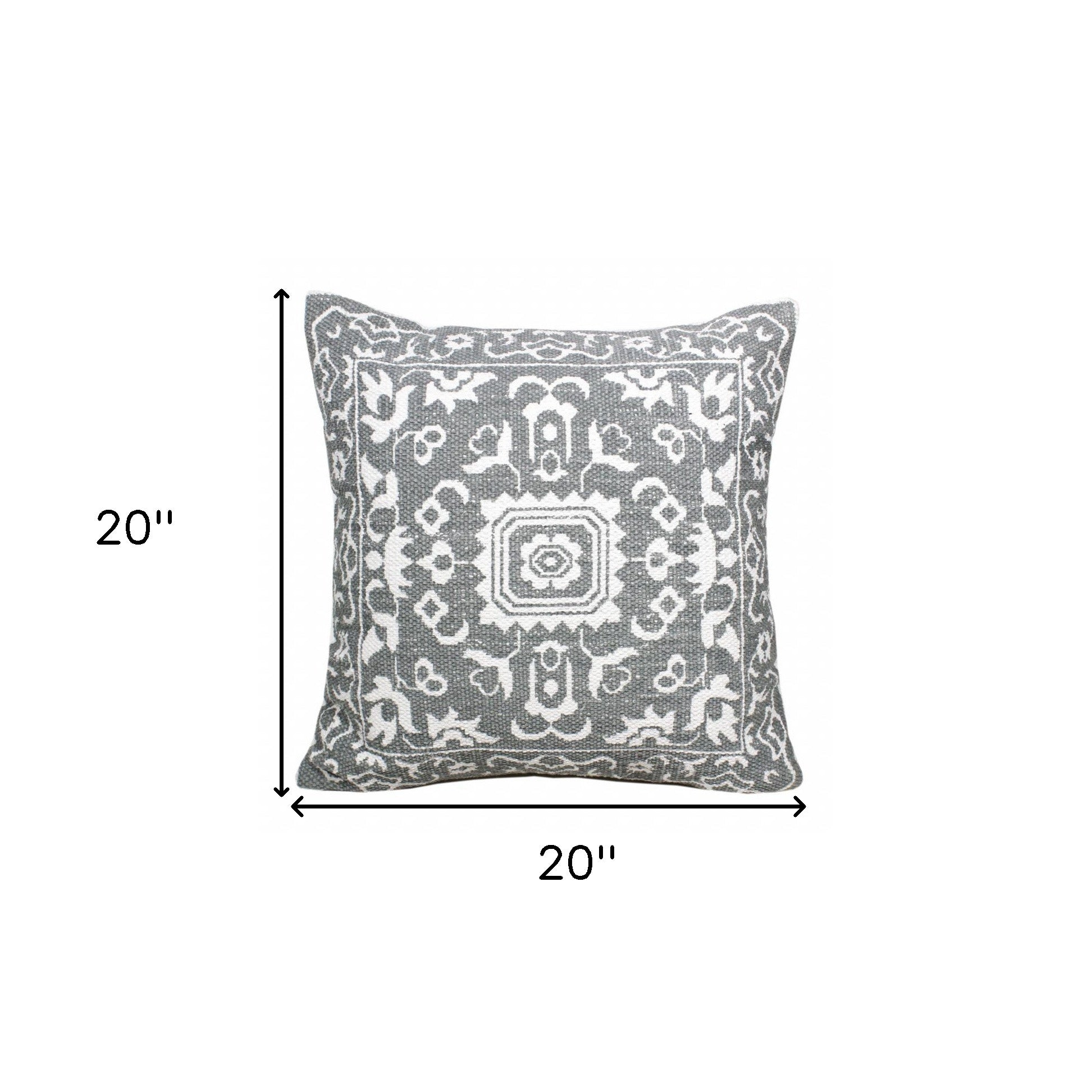 20" X 20" Gray And White 100% Cotton Geometric Zippered Pillow