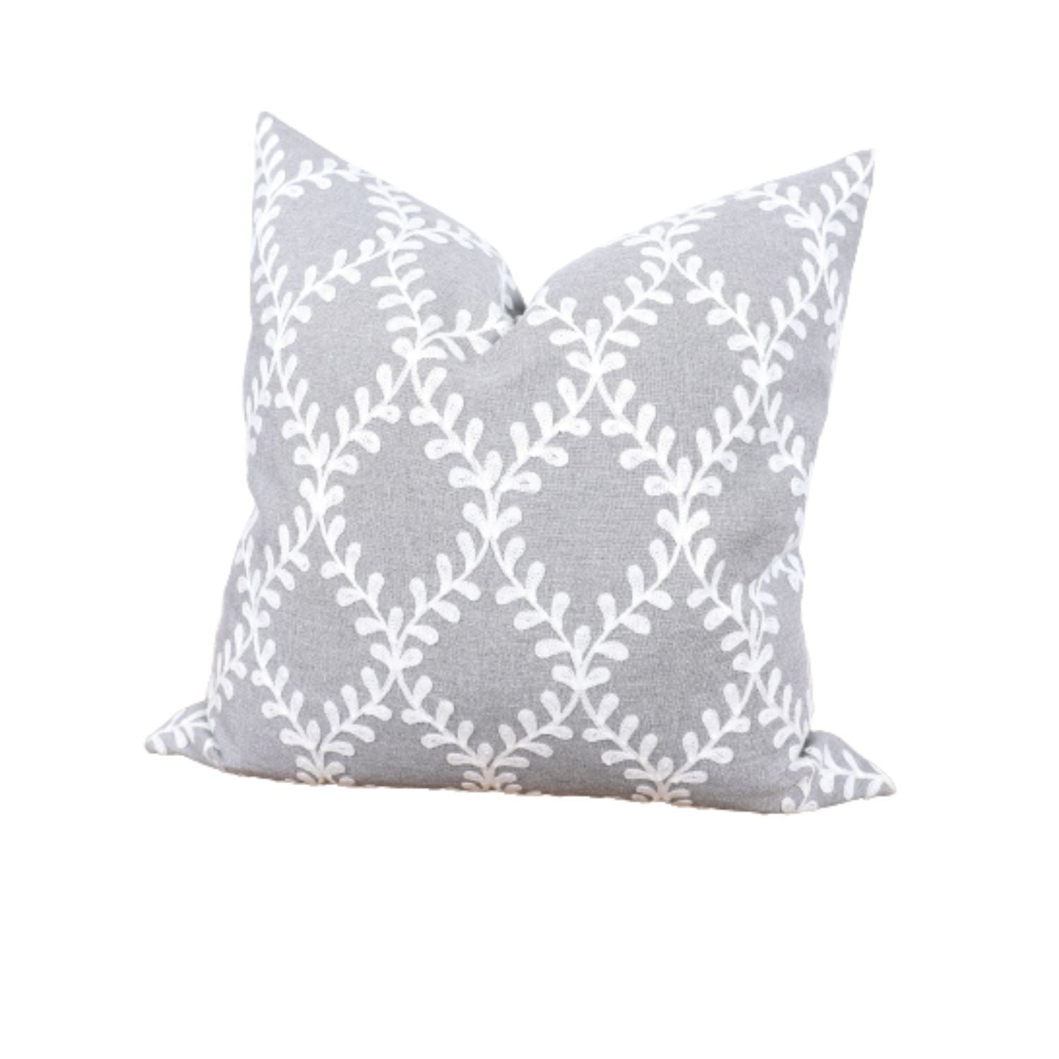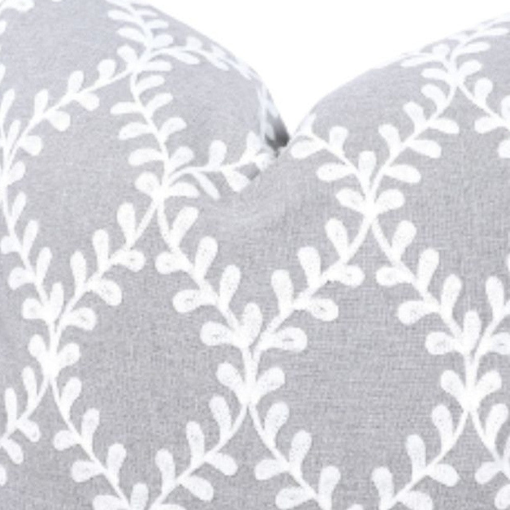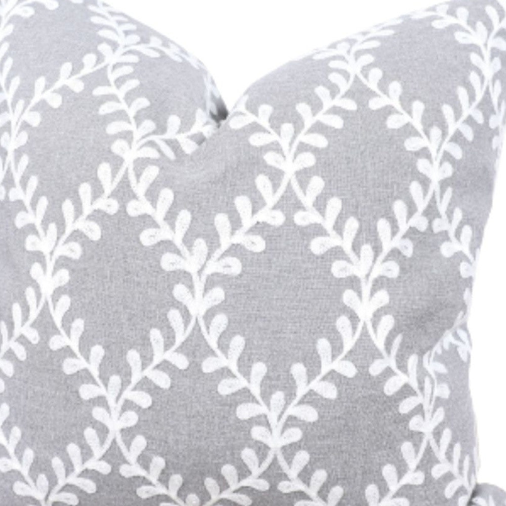 20" X 20" Gray and White Diamond Polyester Zippered Pillow With Embroidery