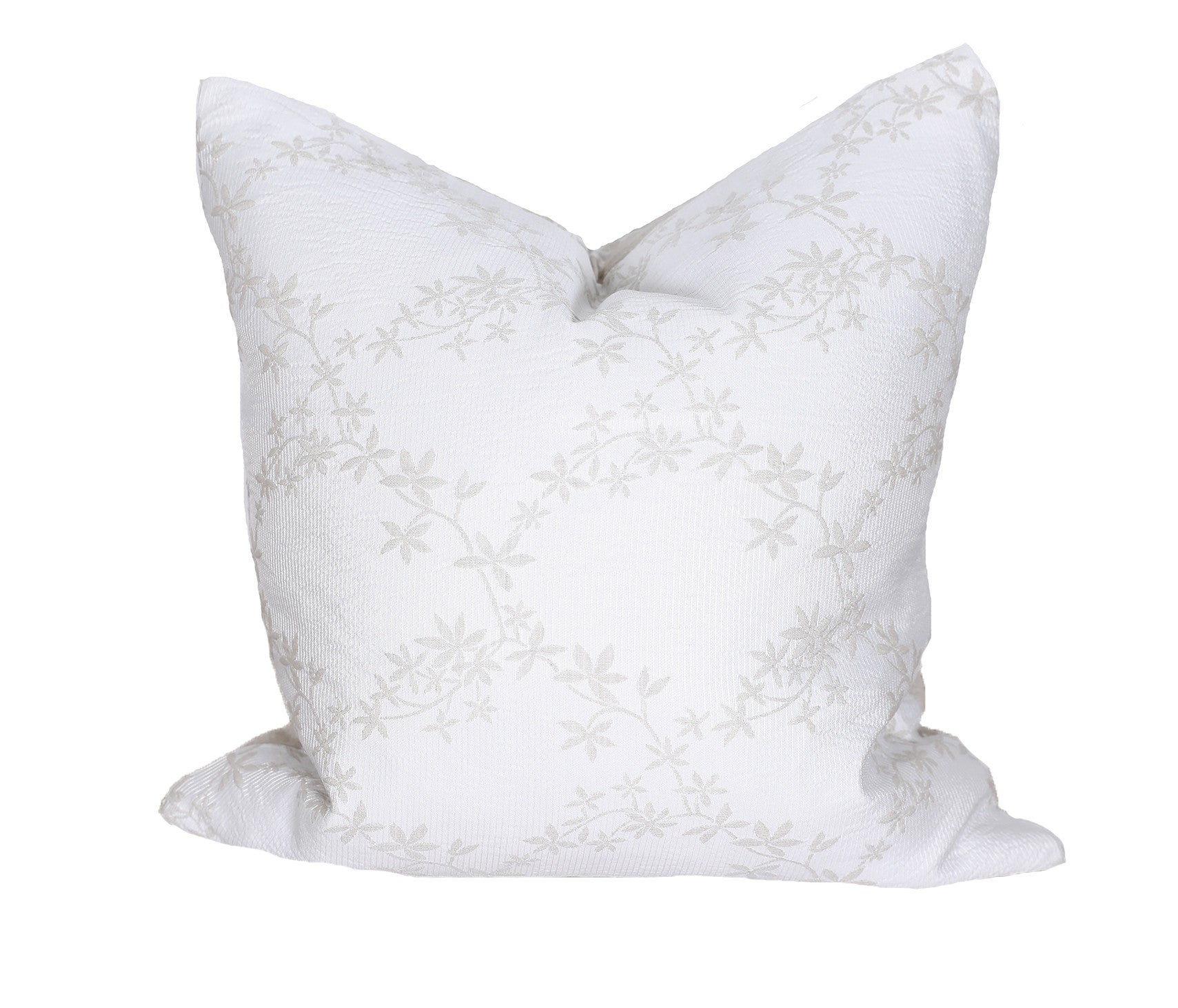 20" X 20" Gray and White Floral Polyester Zippered Pillow