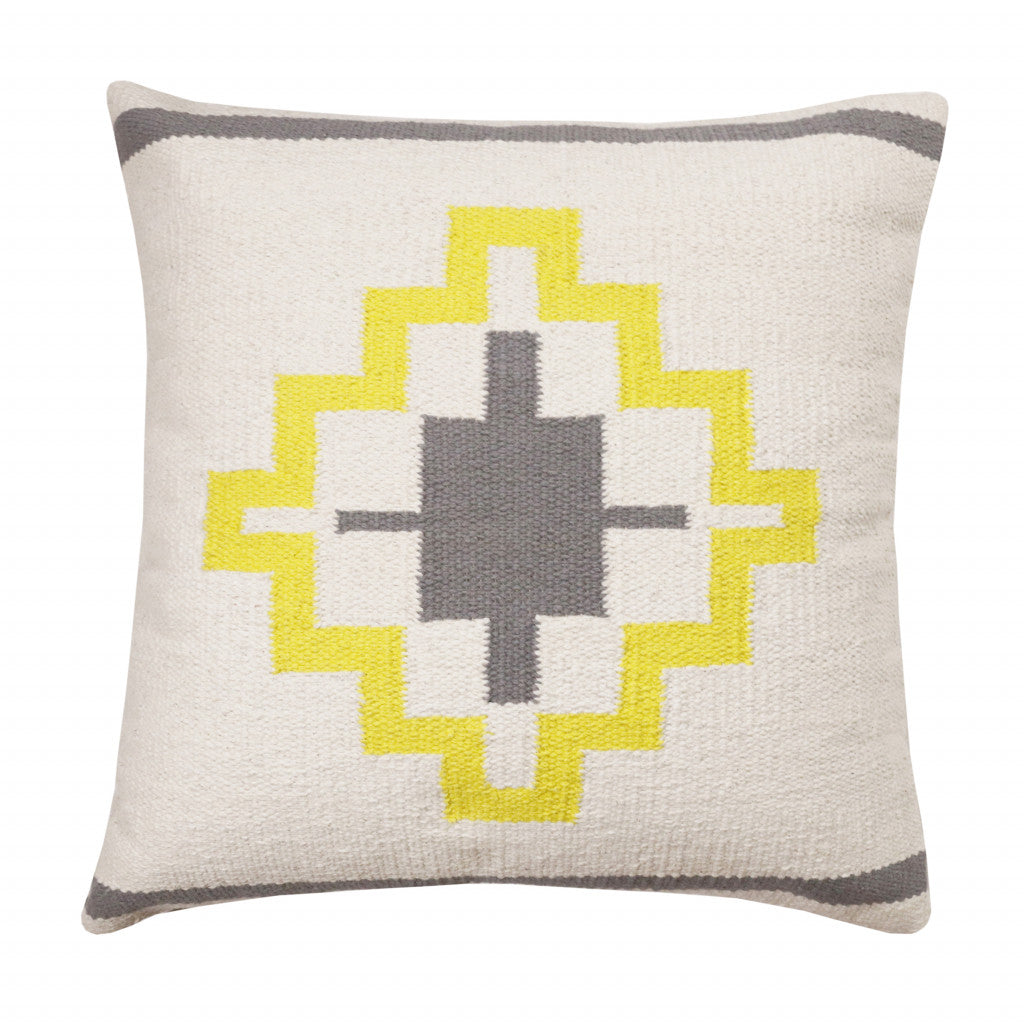 20" X 20" Gray White And Yellow 100% Cotton Geometric Zippered Pillow