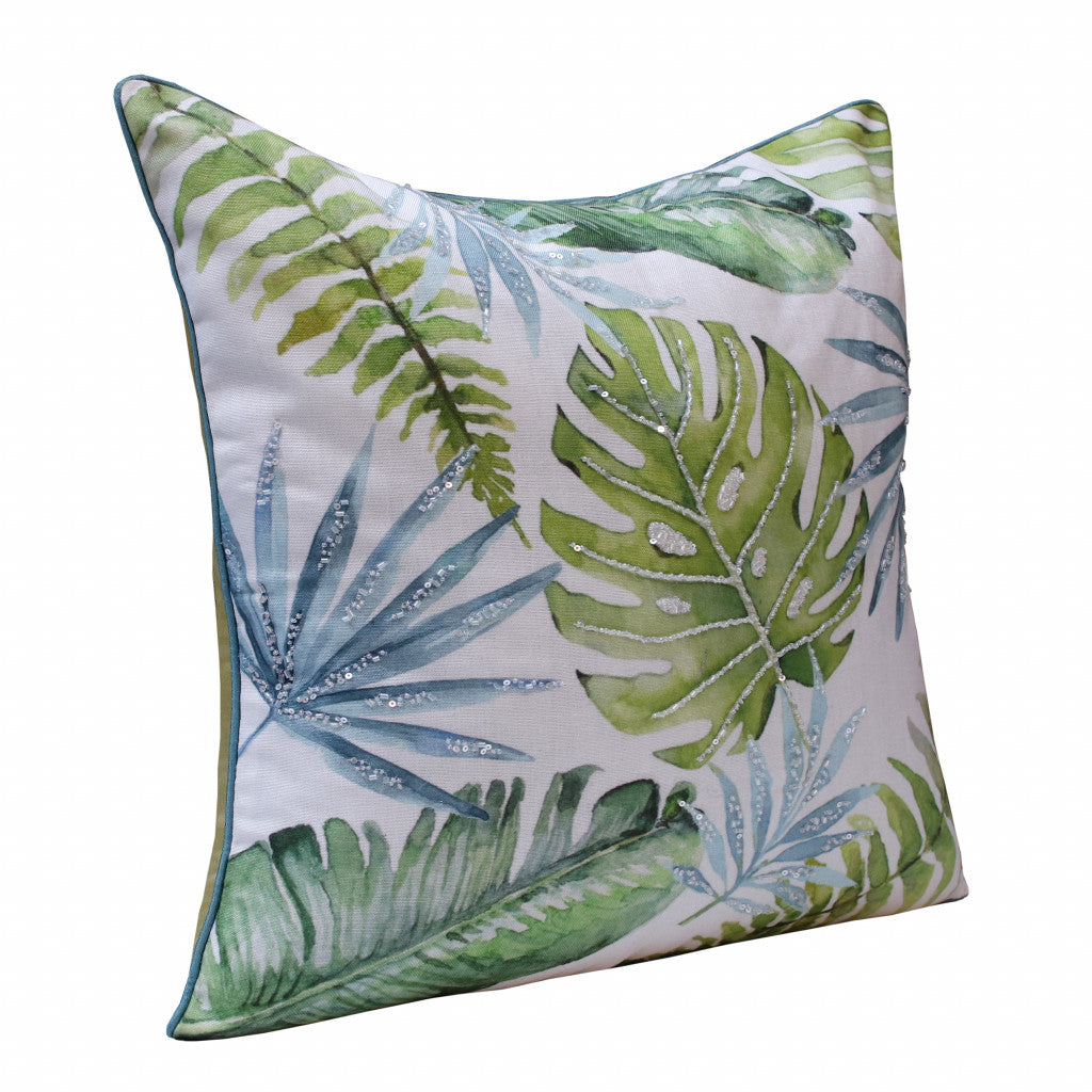 20" X 20" Green And Blue Polyester Floral Zippered Pillow