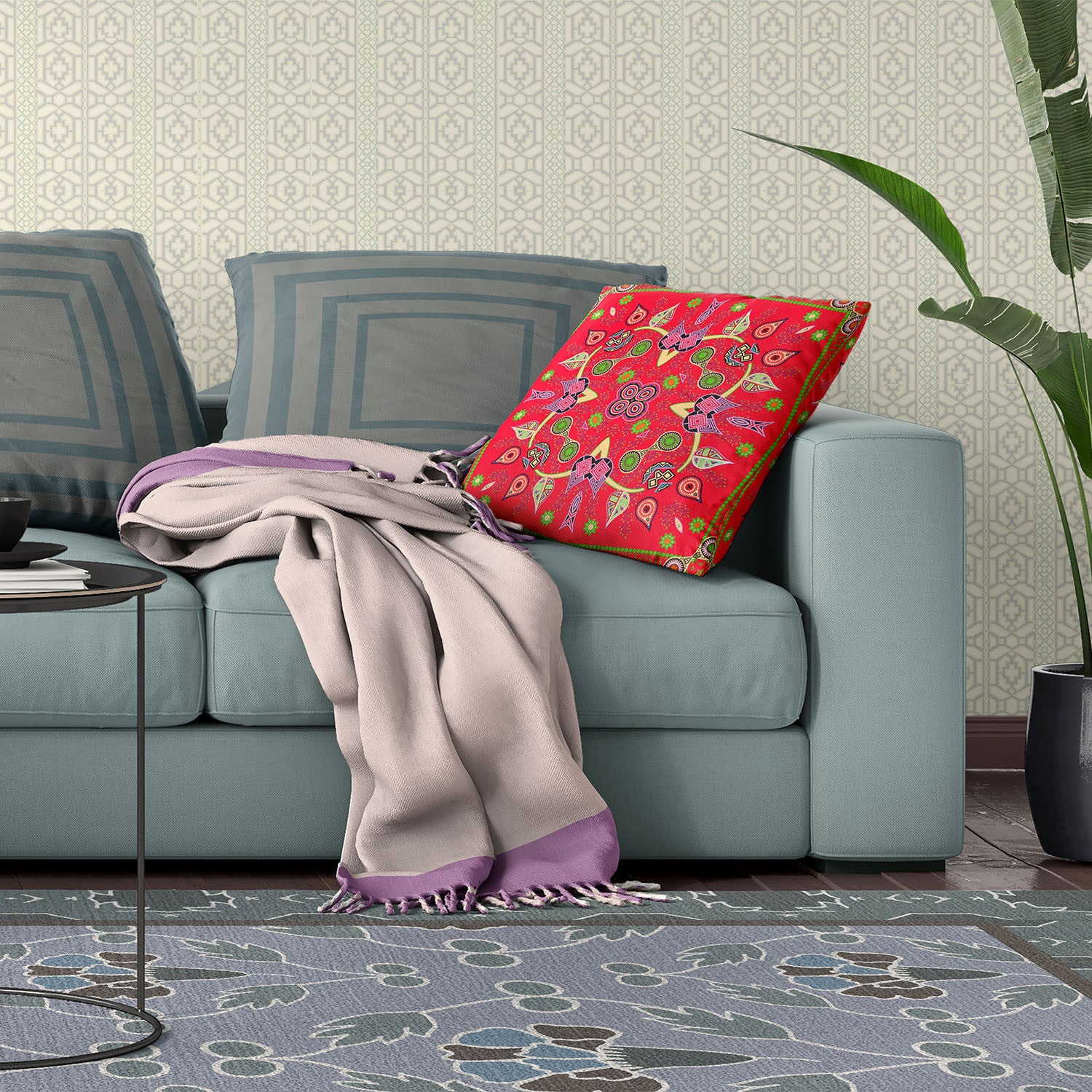 20" X 20" Green and Red Broadcloth Paisley Zippered Pillow