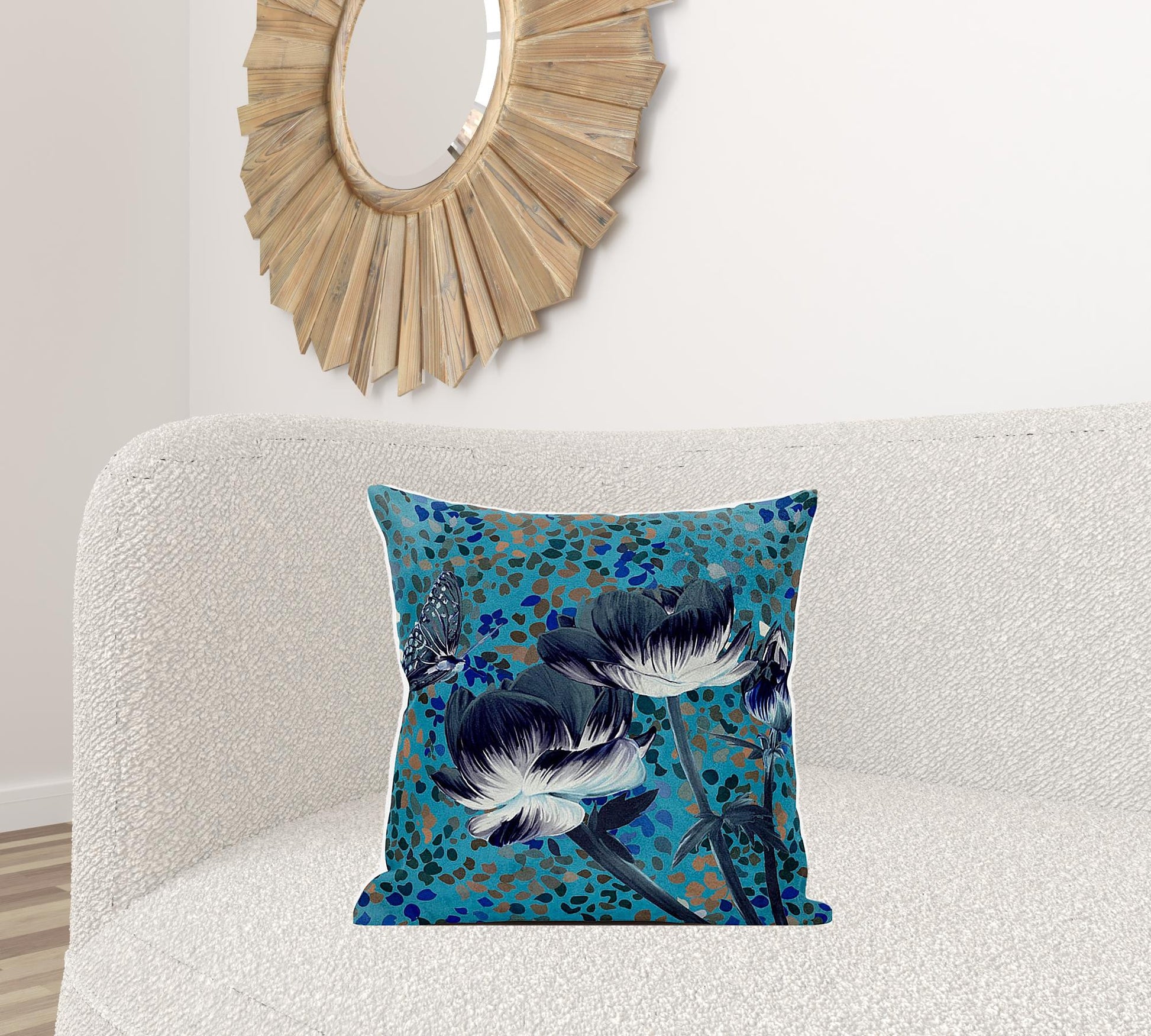 20" X 20" Green and White Butterfly Broadcloth Floral Zippered Pillow
